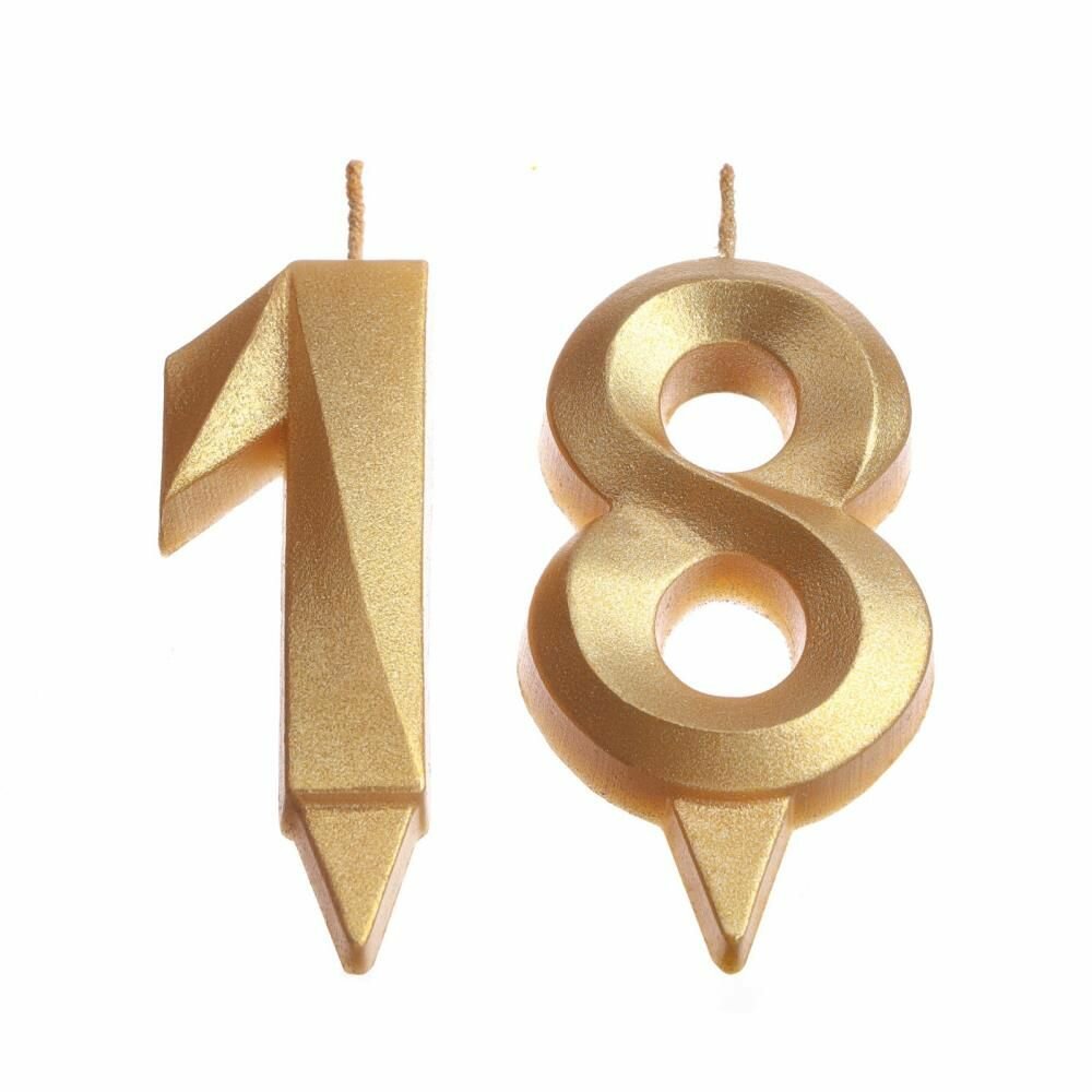 Свеча в торт юбилейная "Грань" (набор 2 в 1), цифра 18, цифра 81, золотой металлик, 6,5 см информация:
