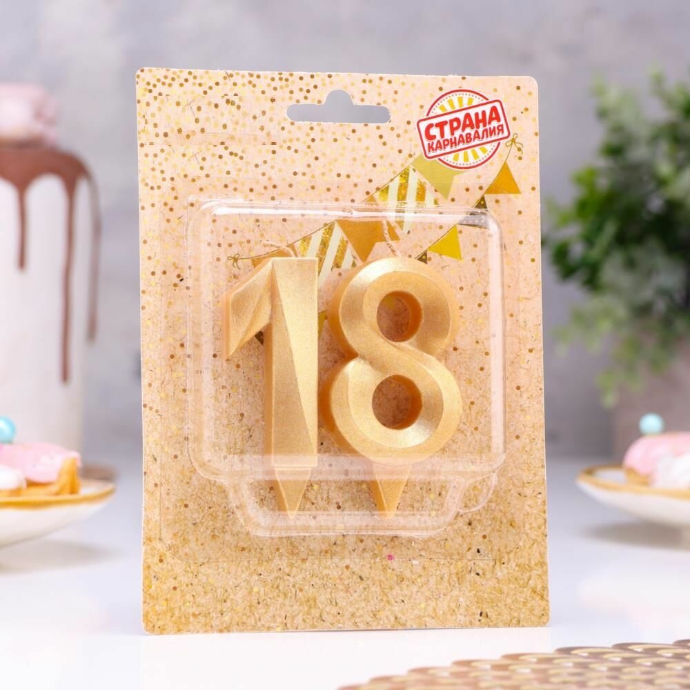 10 цен на Свеча в торт юбилейная "Грань" (набор 2 в 1), цифра 18, цифра 81, золотой металлик, 6,5 см
