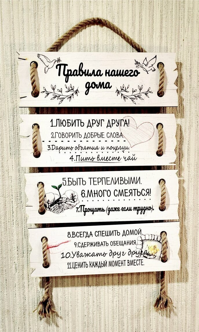 10 цен на Интерьерное панно из дерева "Правила дома"