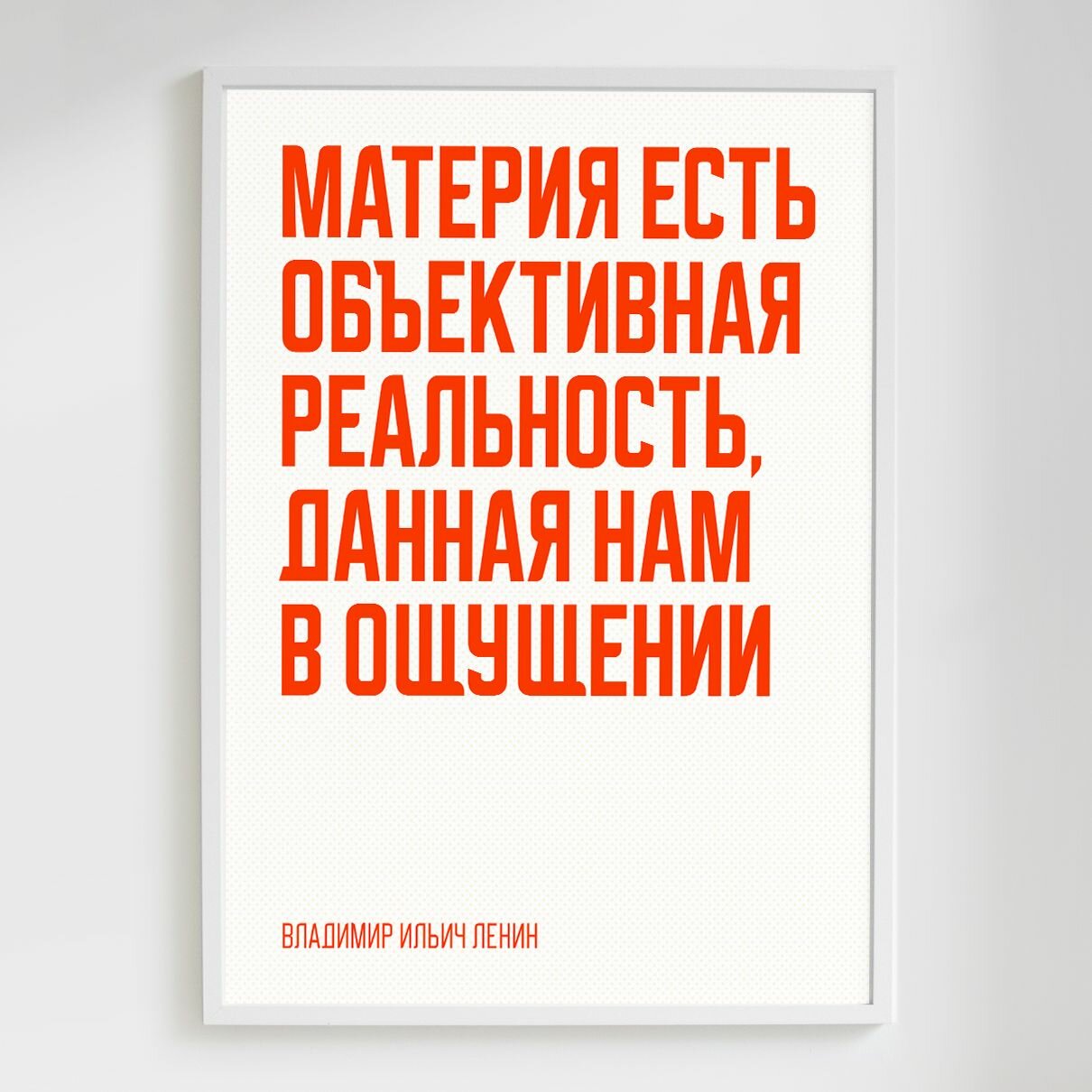 10 цен на Мотивационный постер с надписью "Материя есть объективная реальность, данная нам в ощущении" формата А3 (42 x 30 см) в тубусе