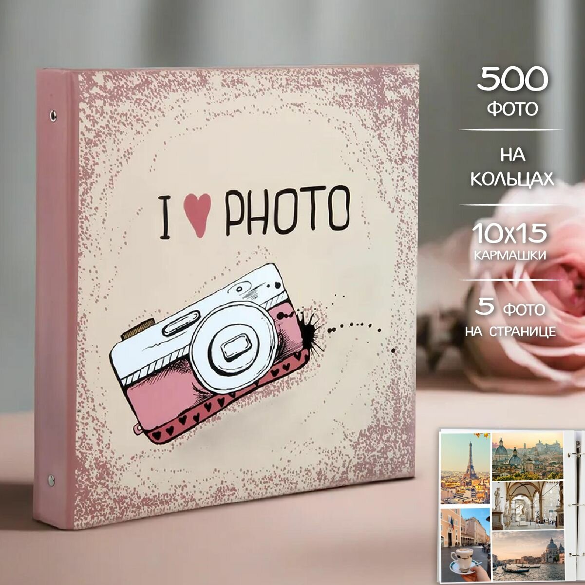 Фотоальбом «Деревянный пирс», 500 фото в кармашках, металлические кольца