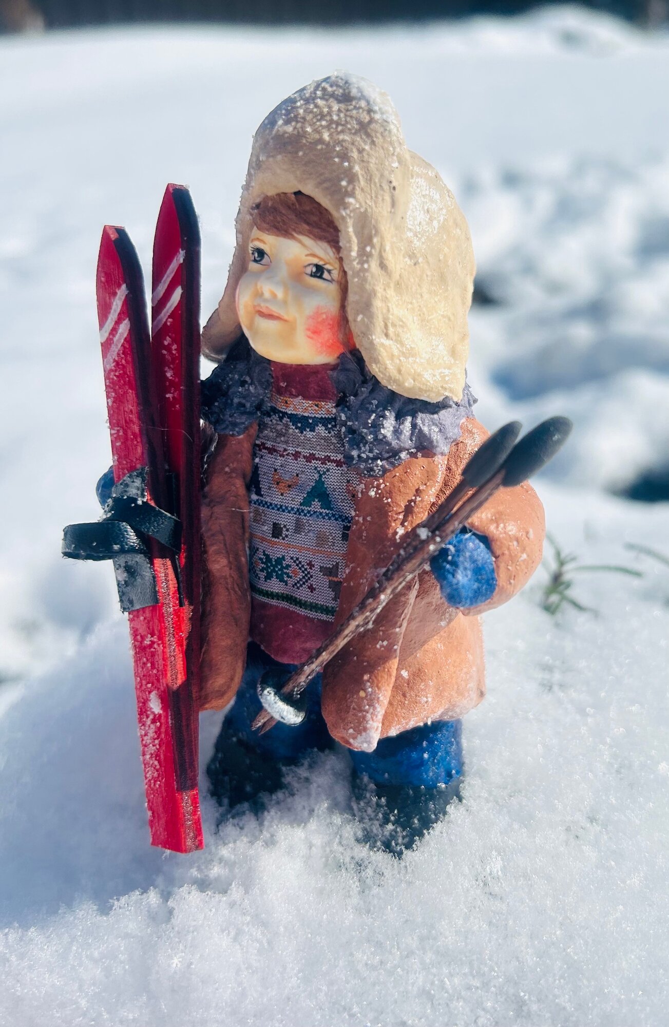 Ватная елочная игрушка - мальчик с лыжами информация: