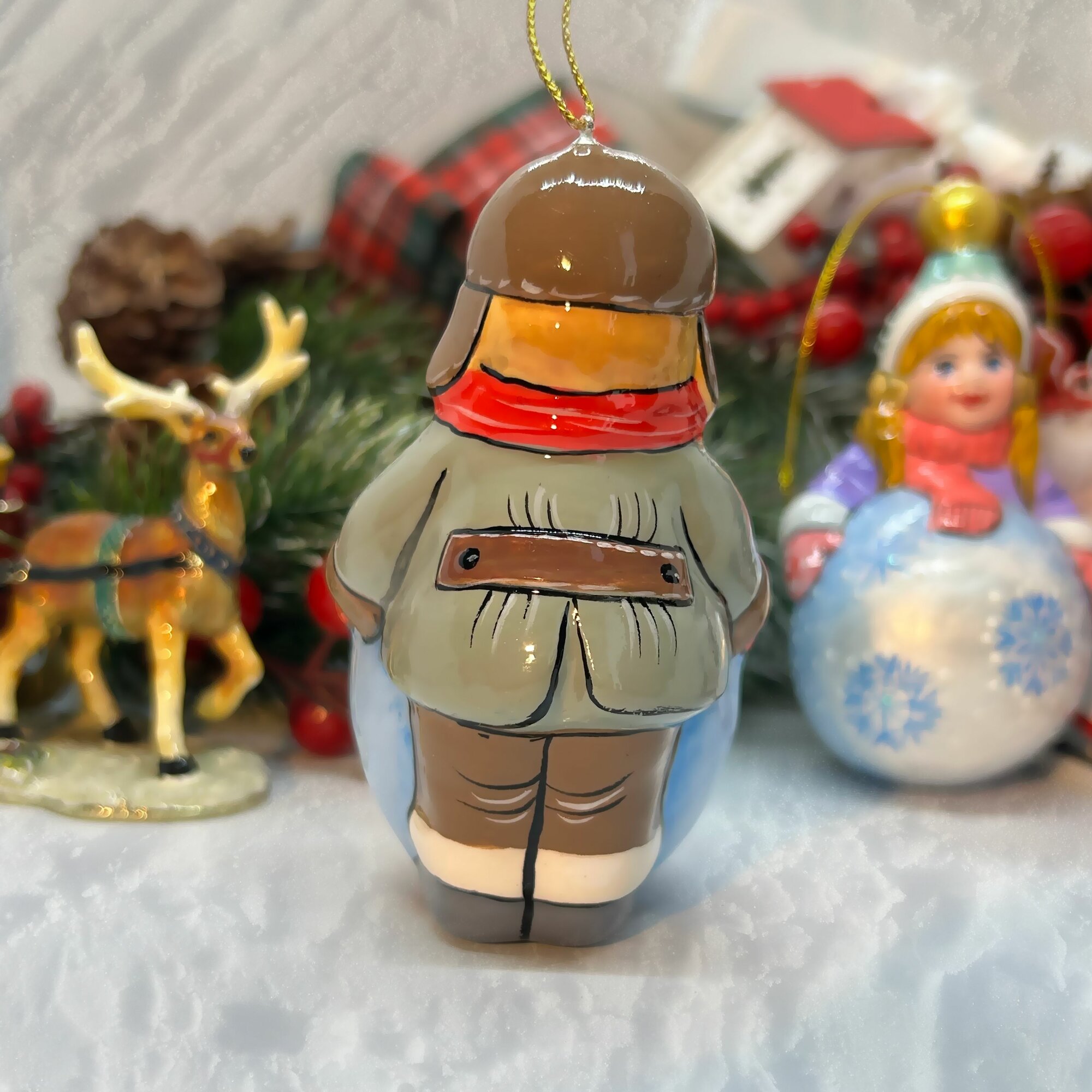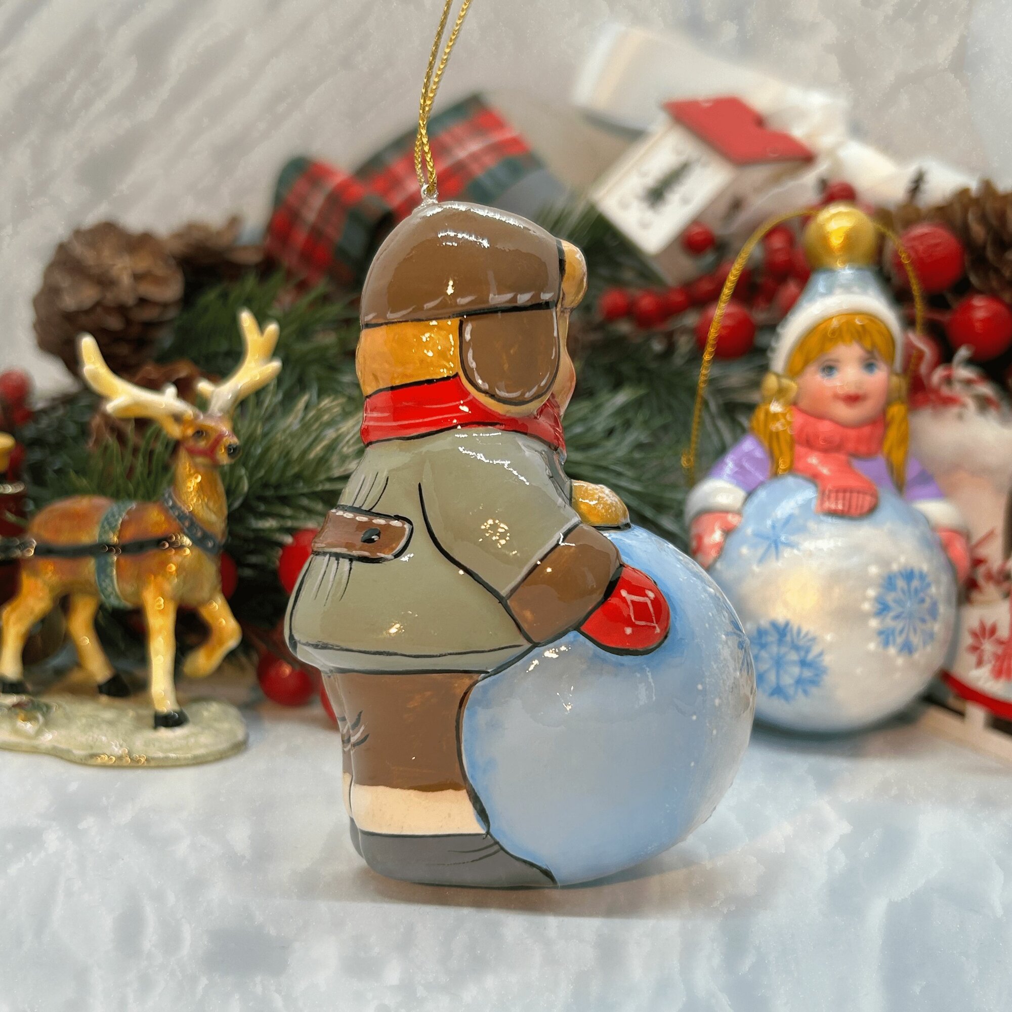 10 цен на Елочная игрушка фарфоровая "Мальчик с комком снега" Ручная работа / Мастерская сказок