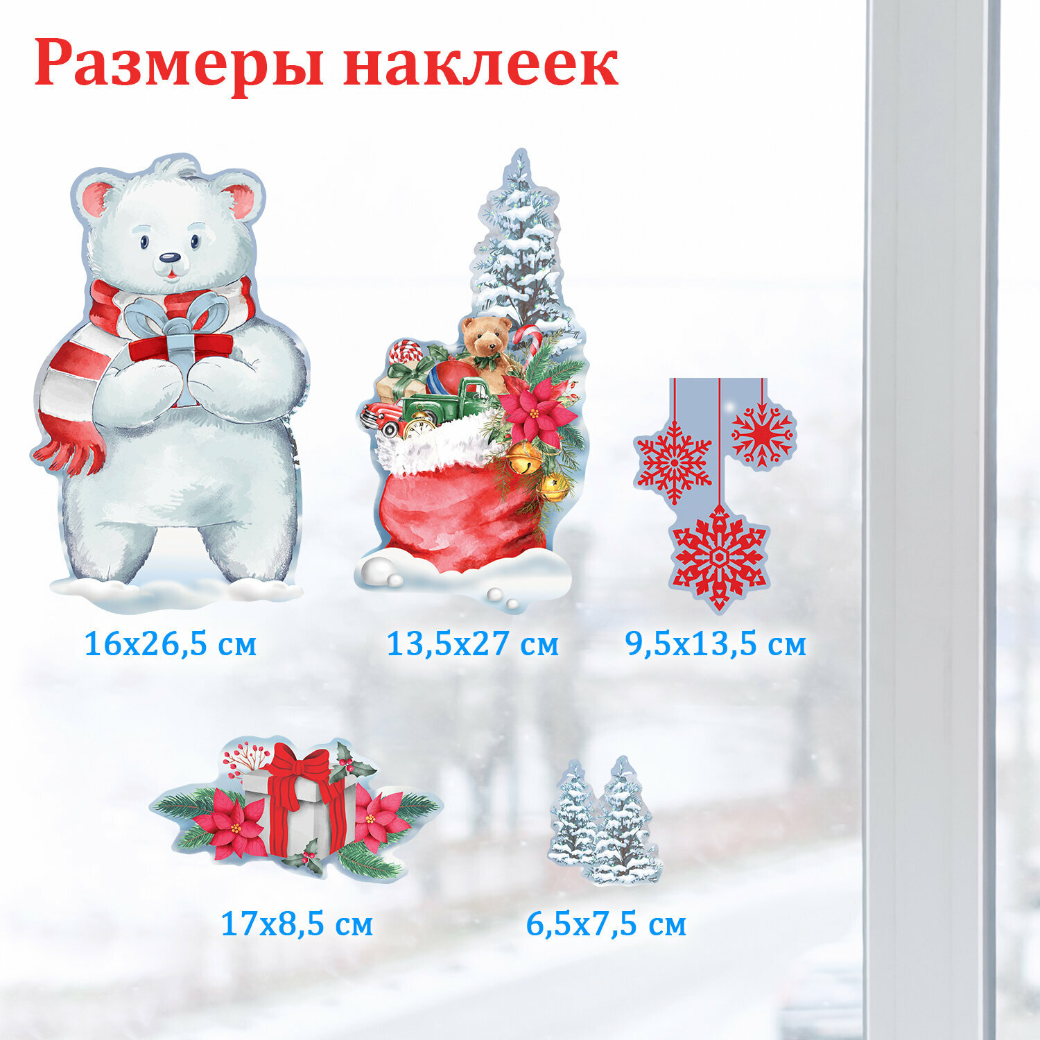 10 цен на Наклейка для окон двусторонняя многоразовая 30x38 см, "Медвежонок", золотая сказка, 591923