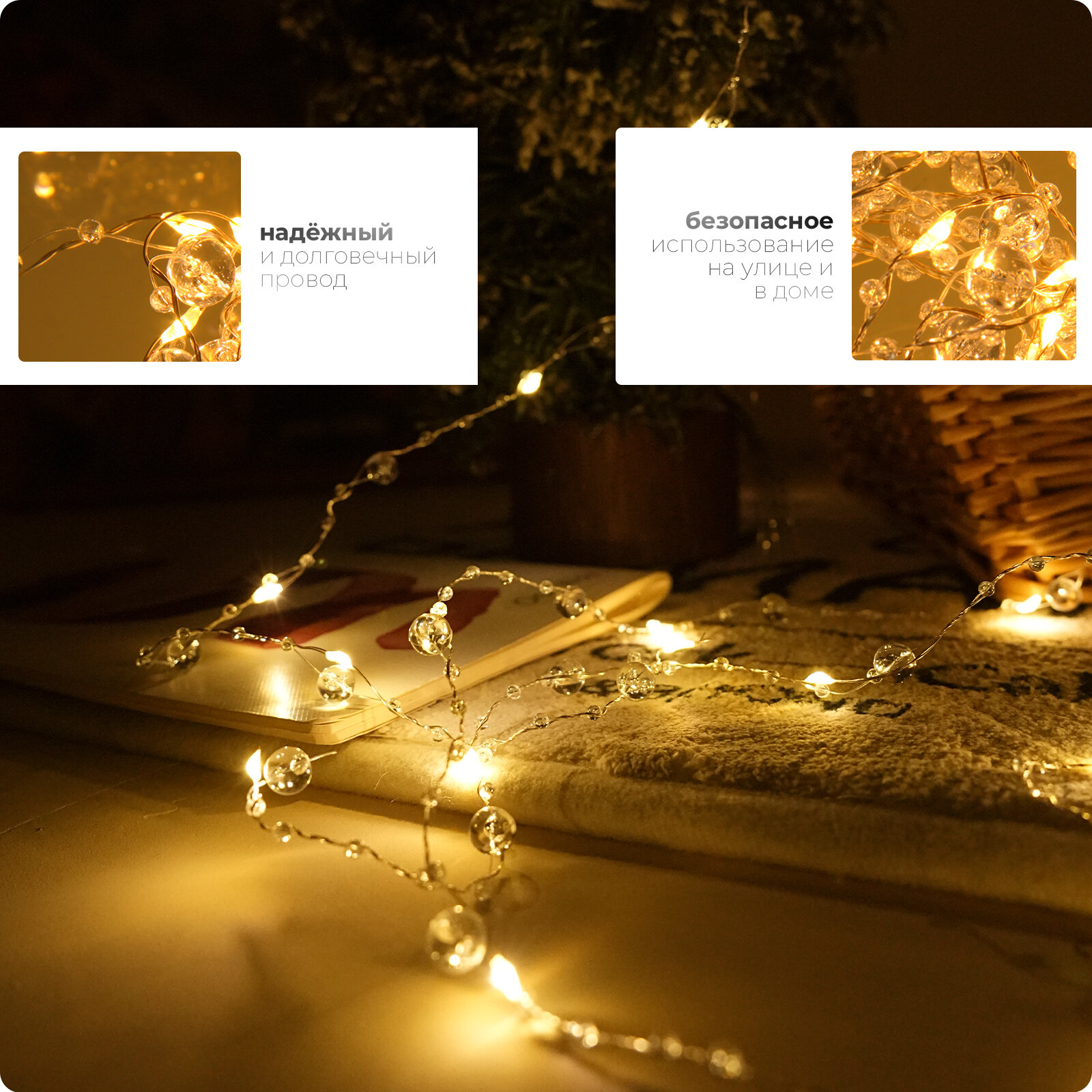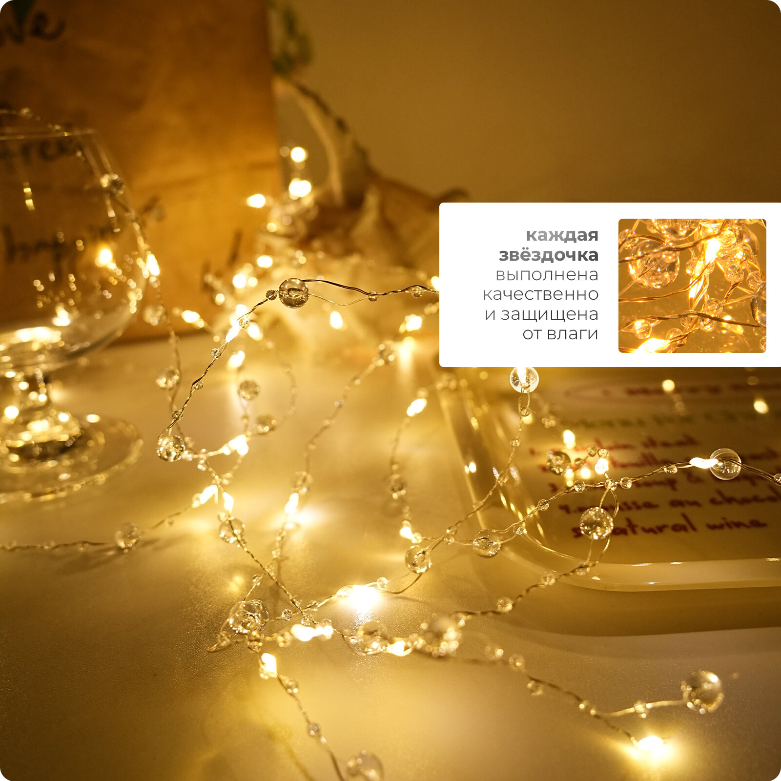 Гирлянда Роса 10м, питание от батареек АА, светодиодная