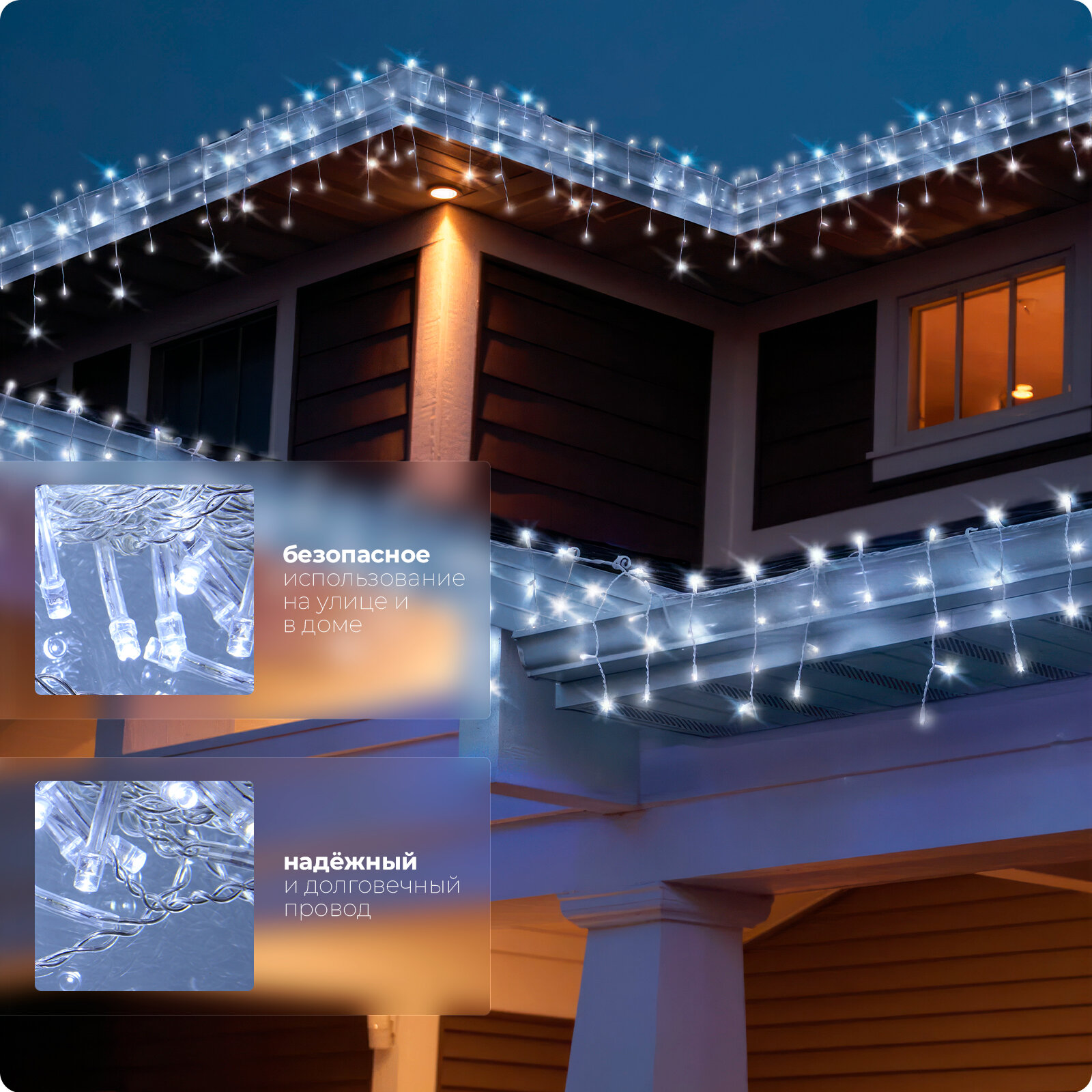 Гирлянда уличная Бахрома 50м / Гирлянда светодиодная, питание от сети 220В, черный провод, белый свет