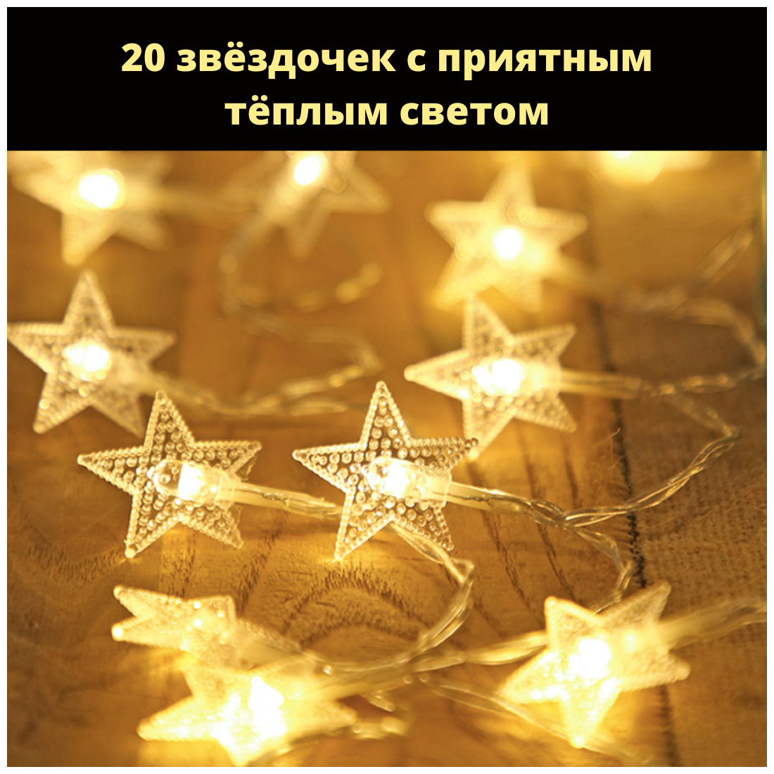 Гирлянда Звёздочки Гирляндика от батареек 3м тёплый свет информация: