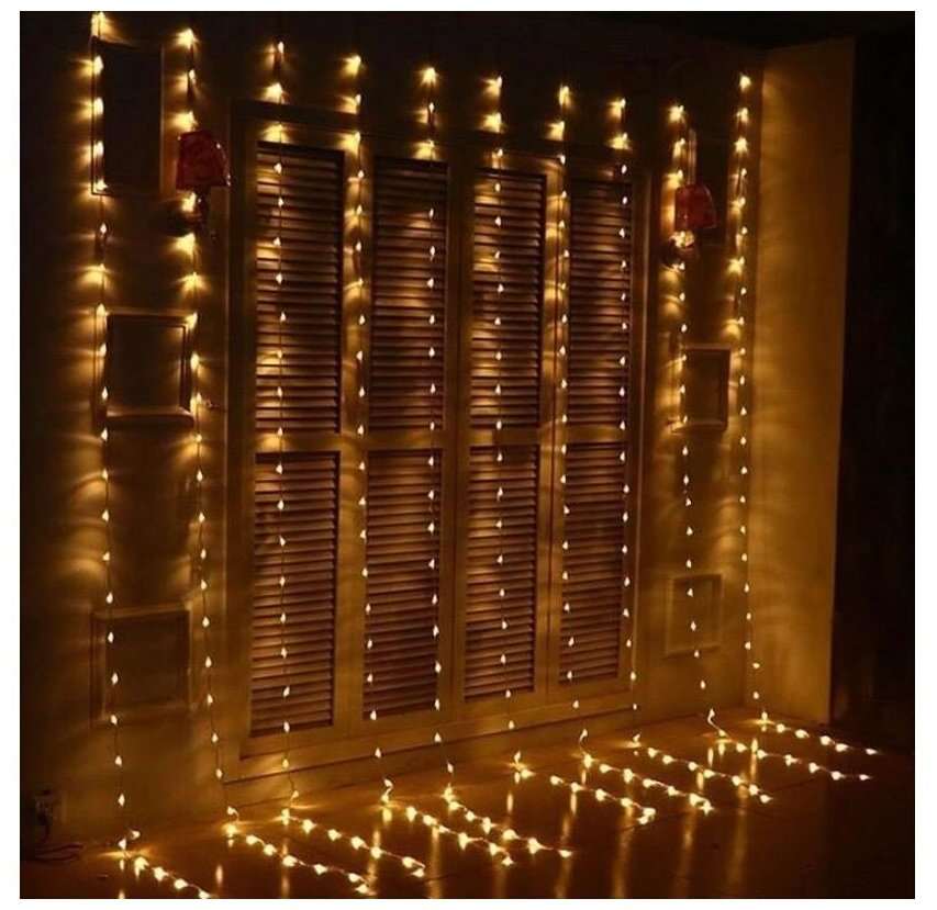 Отзывы на Гирлянда электрическая интерьерная 1,5х1,5метра New Year 2023/160 LED/8 режимов/Светодиодная штора- занавес/Световой дождь/Тюль /Теплый желтый