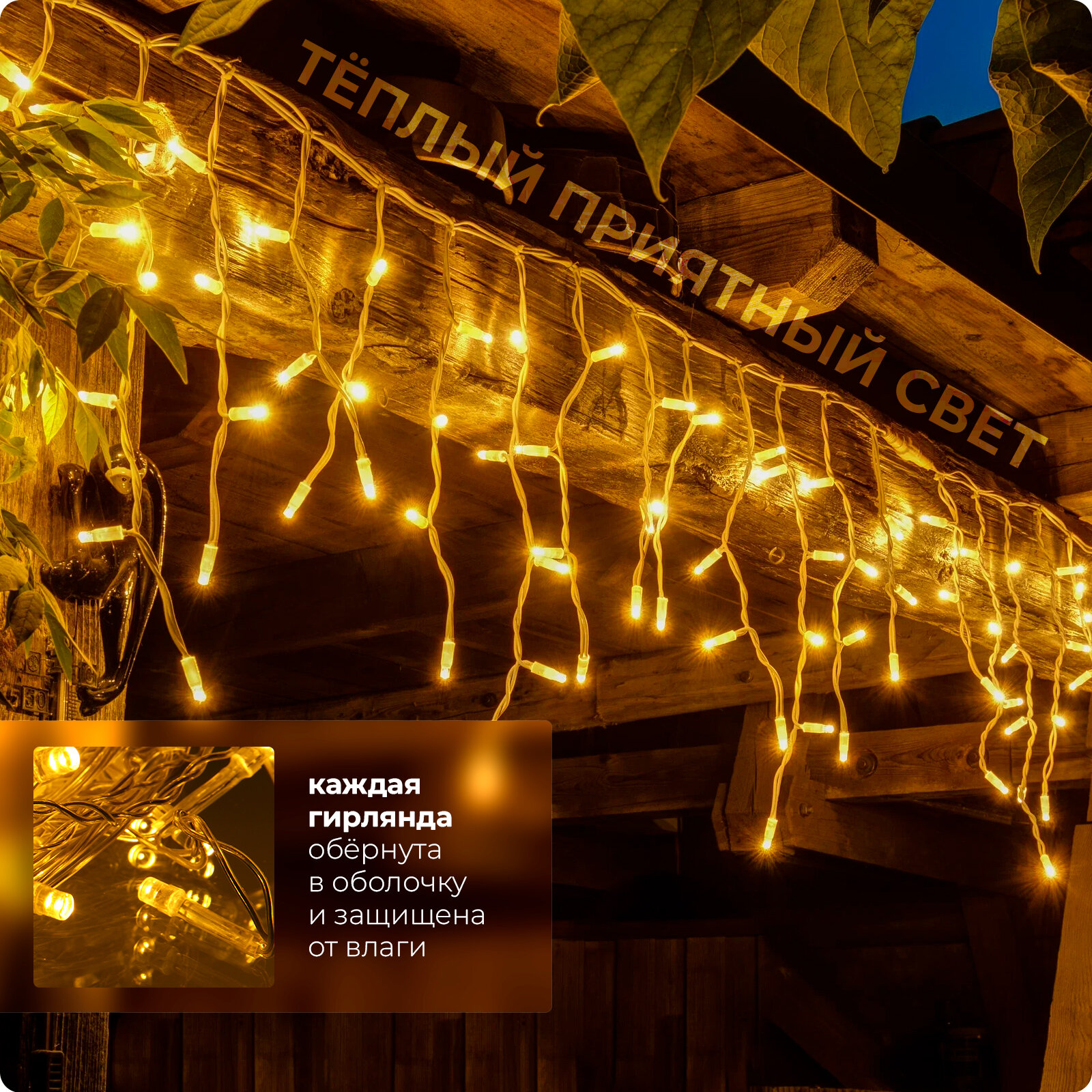 Уличная гирлянда (теплый свет), длина 12 м информация: