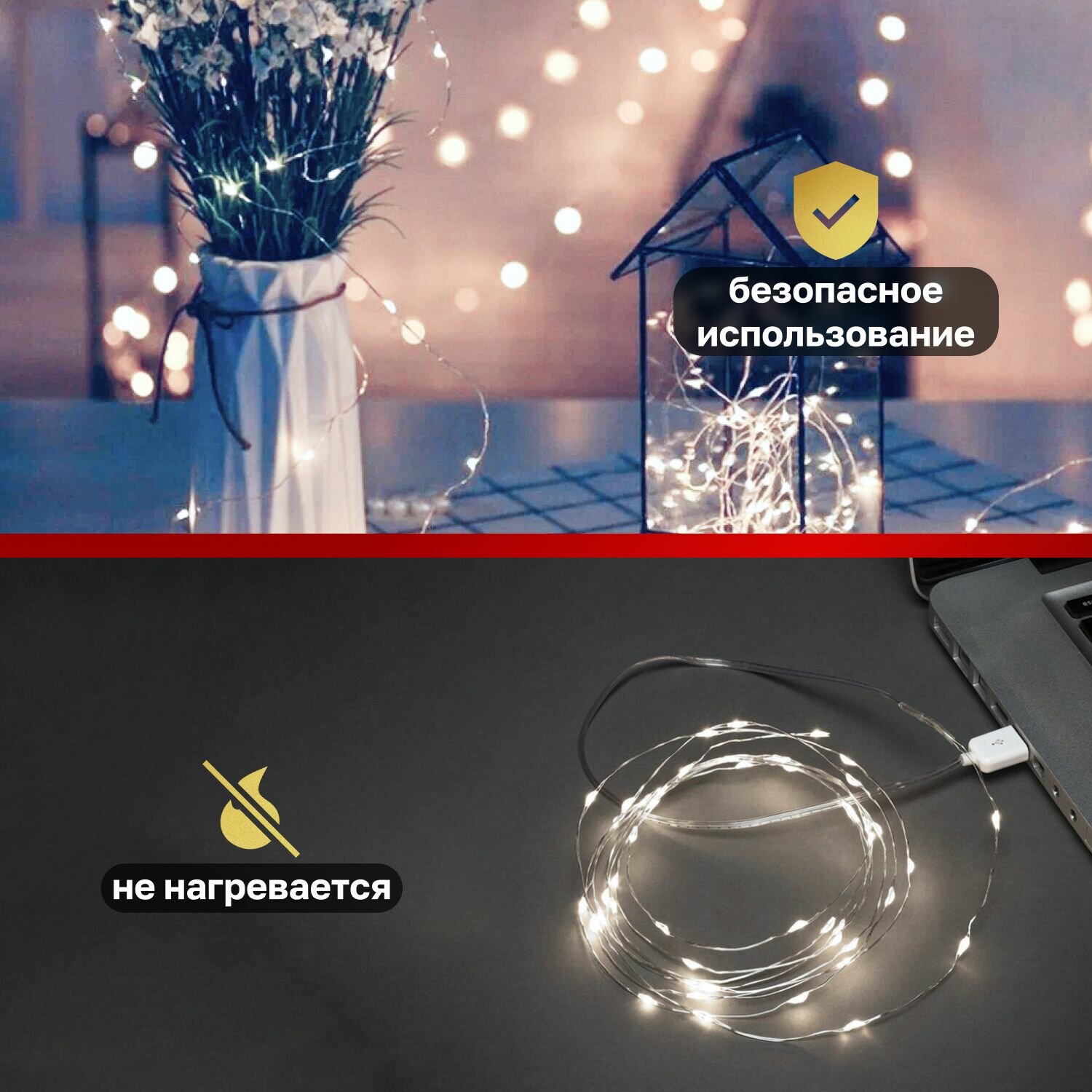 Светодиодная гирлянда Neon-Night "Роса" USB 10 м, теплое белое свечение, 100 LED / новогодние товары гирлянды / новогодняя распродажа / новогодние скидки / новогодние подарки