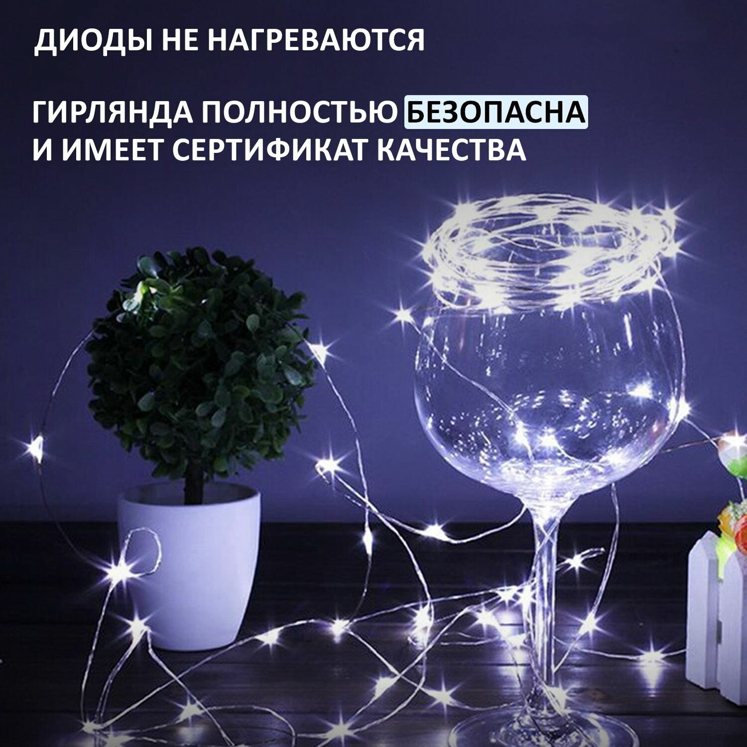Гирлянда «Роса» 5 м, 50 LED, работа от батарейки, белое свечение