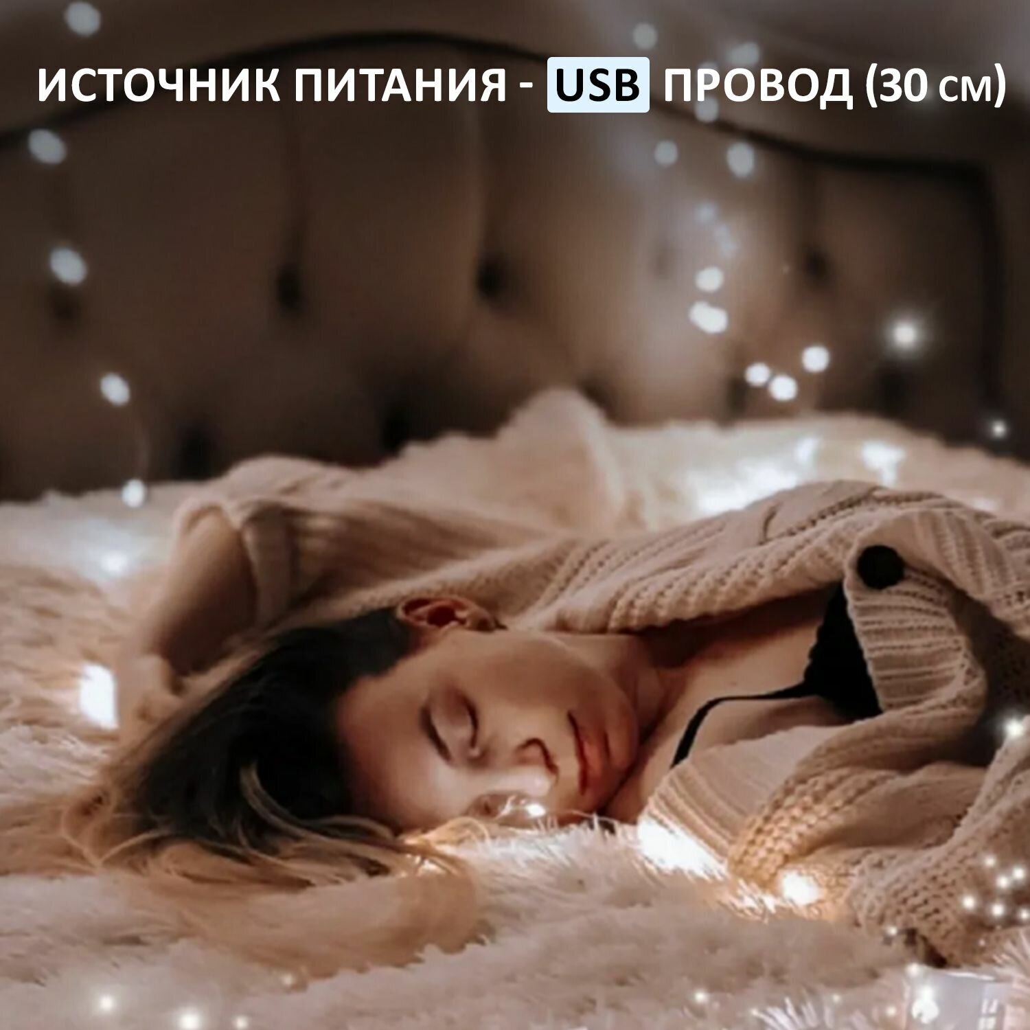 Светодиодная гирлянда Neon-Night "Роса" USB 10 м, теплое белое свечение, 100 LED / новогодние товары гирлянды / новогодняя распродажа / новогодние скидки / новогодние подарки