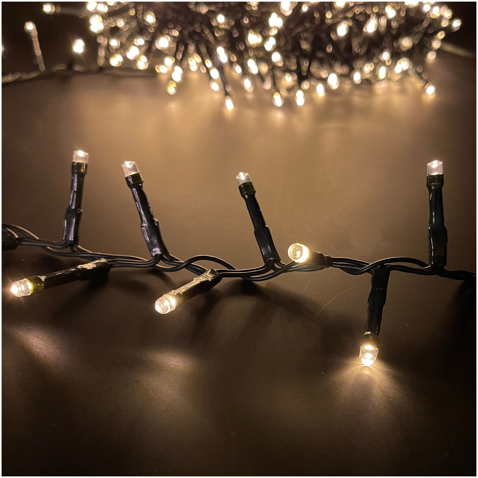 Гирлянда «Нить» 7 м, IP20, тёмная нить, 180 ламп, свечение тёплое белое, 8 режимов, 220 В, 187157