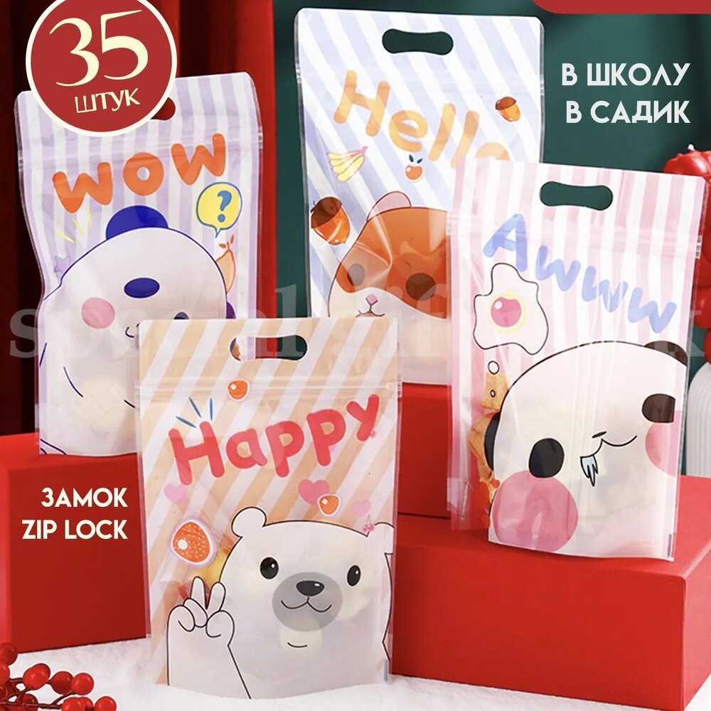 Отзывы на Пакеты для сладостей детские подарочные, 35 шт 15*22 см "Животтные" зип zip lock Marsel Home