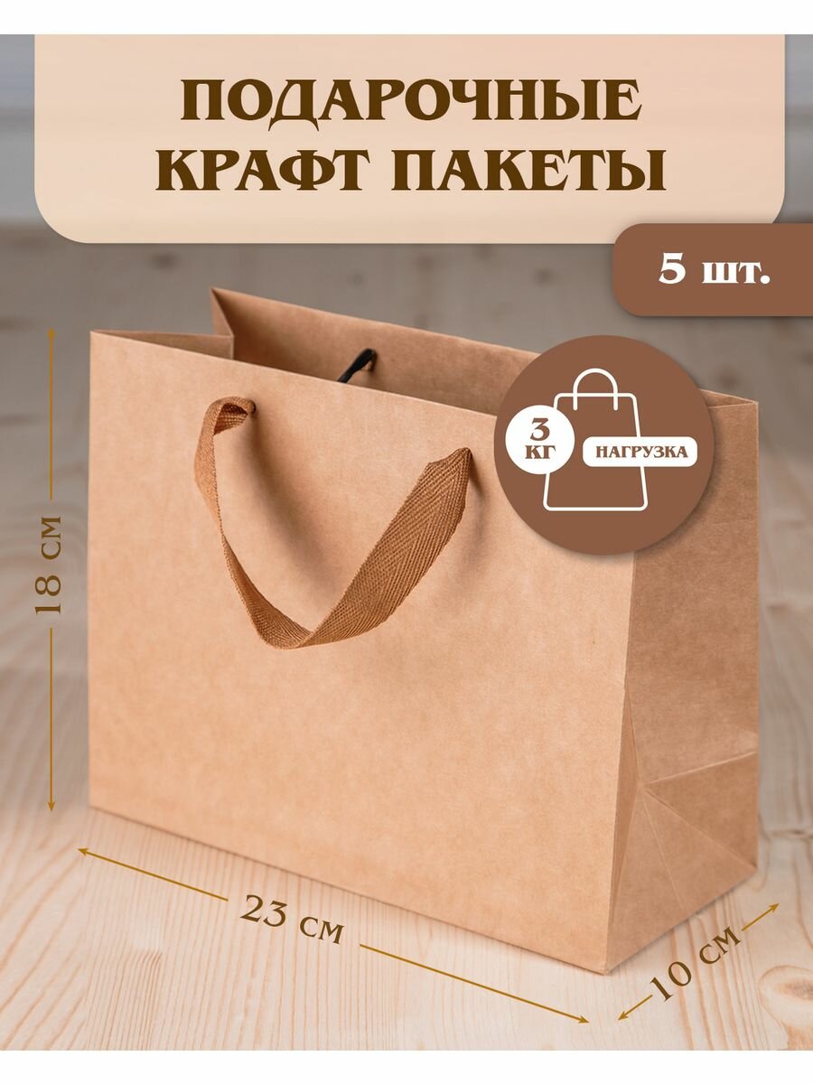 Подарочный крафт пакет 23*18*10 5 шт информация: