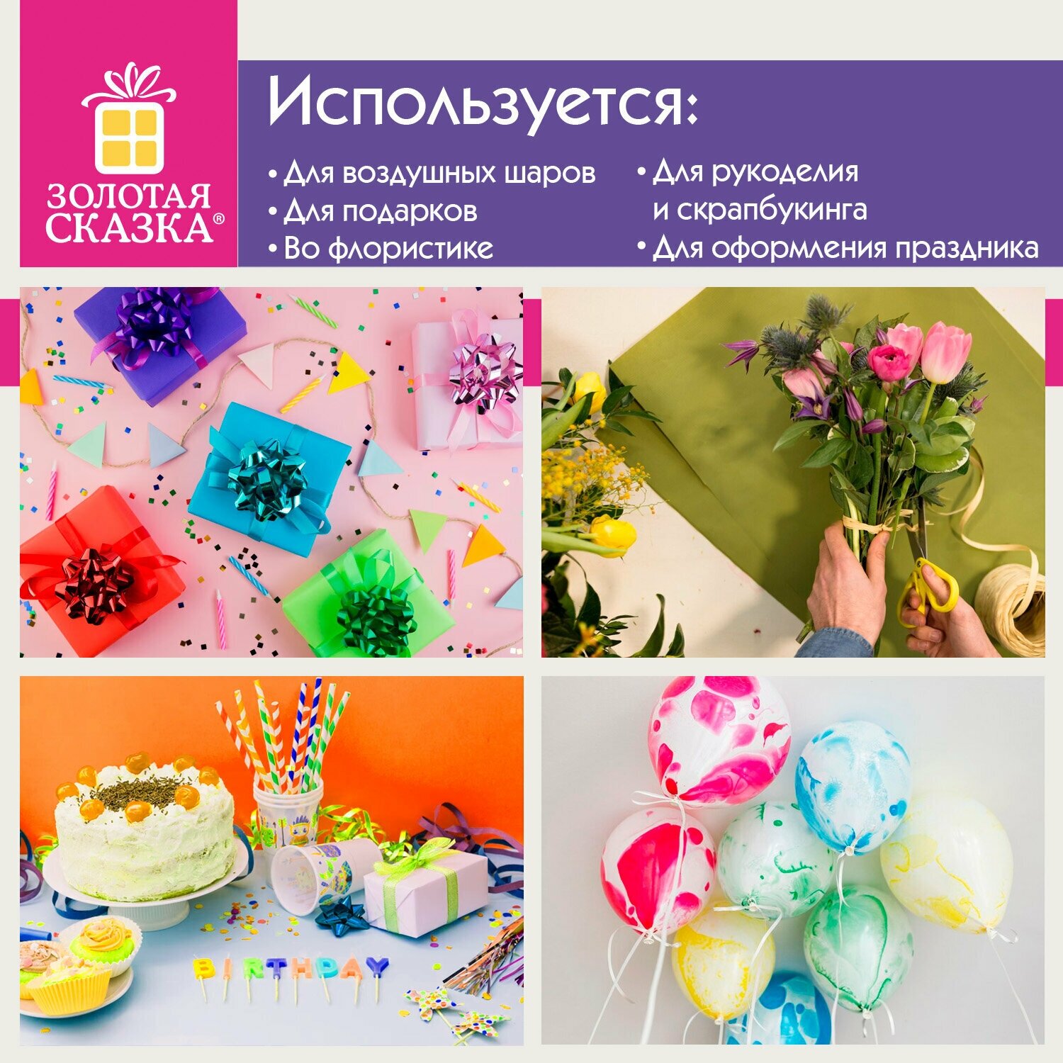 Отзывы на Лента упаковочная подарочная декоративная для воздушных шаров и подарков металлик 5мм х 250м мультицвет, Золотая Сказка, 591844
