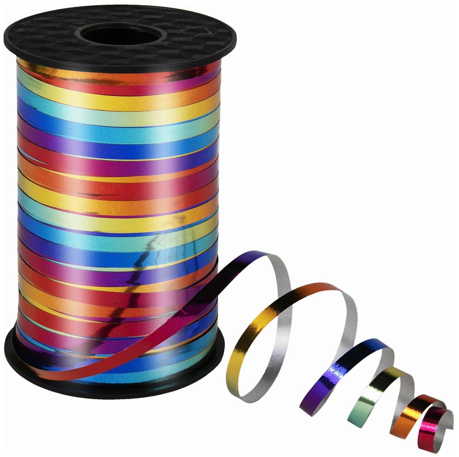 Лента упаковочная подарочная декоративная для воздушных шаров и подарков металлик 5мм х 250м мультицвет, Золотая Сказка, 591844 информация: