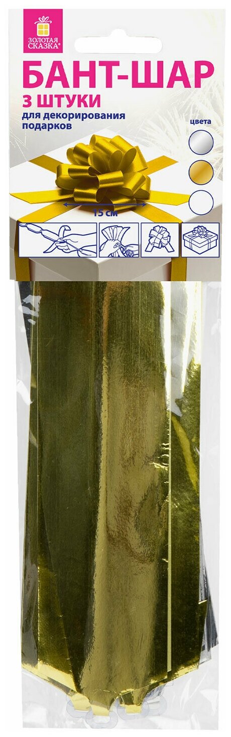 Отзывы на Бант шар / бантик подарочный упаковочный большой для подарка диаметр 15 см Набор 3 штуки, цвета металл серебро, золото, белый Золотая Сказка, 591832