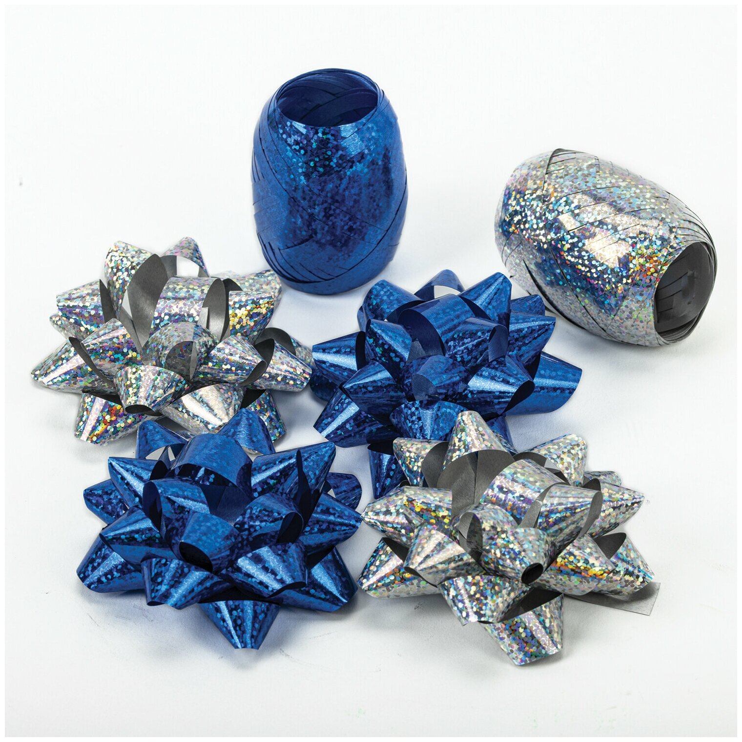 Набор для декора и подарков 4 банта, 2 ленты, металлик, цвета: синий, красный, золотая сказка, 591846