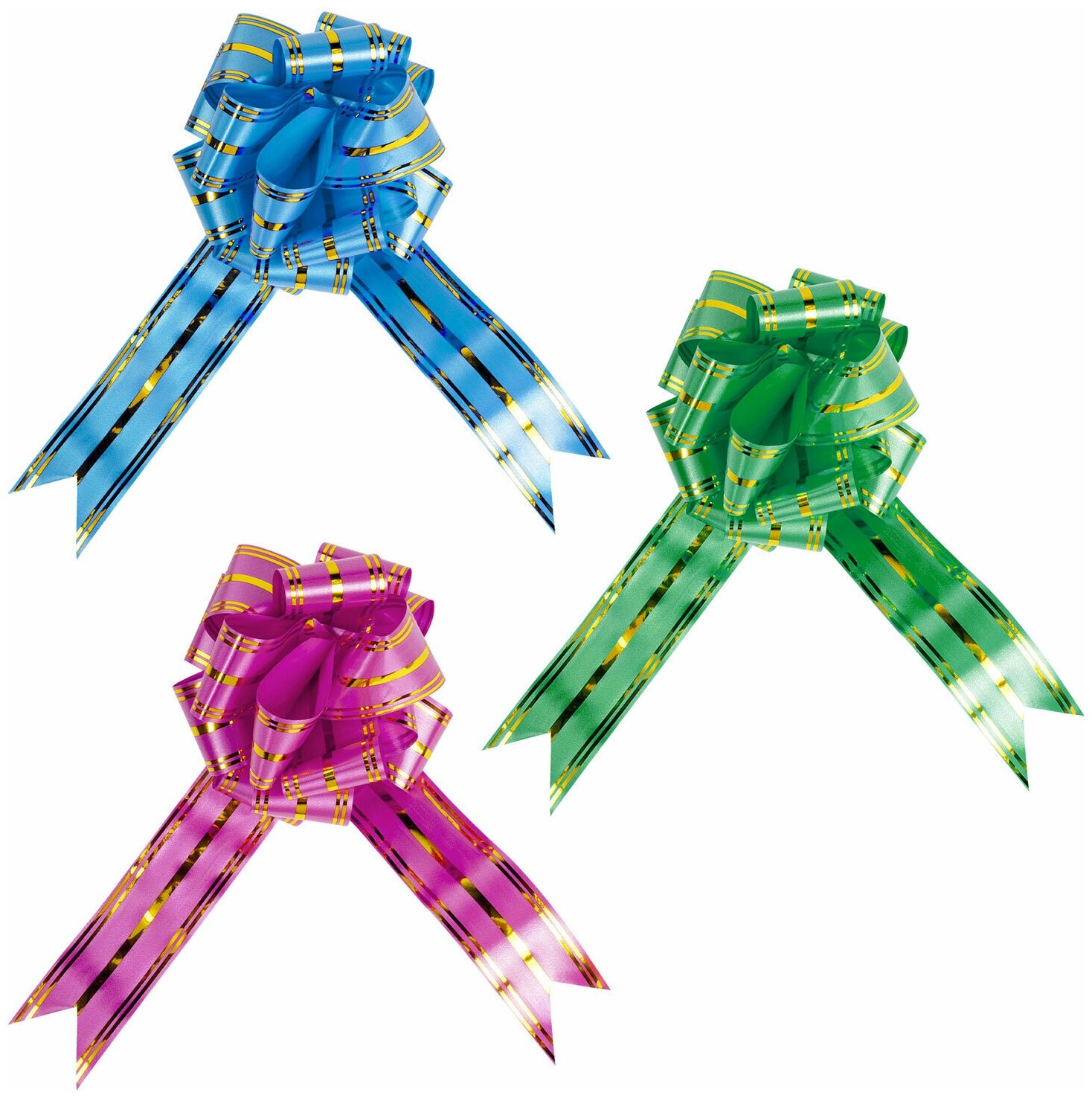 10 цен на Бант шар / бантик подарочный упаковочный большой для подарка диаметр 15 см 3 штуки, золотые полосы, фуксия, бирюза, зеленый, Золотая Сказка, 591836