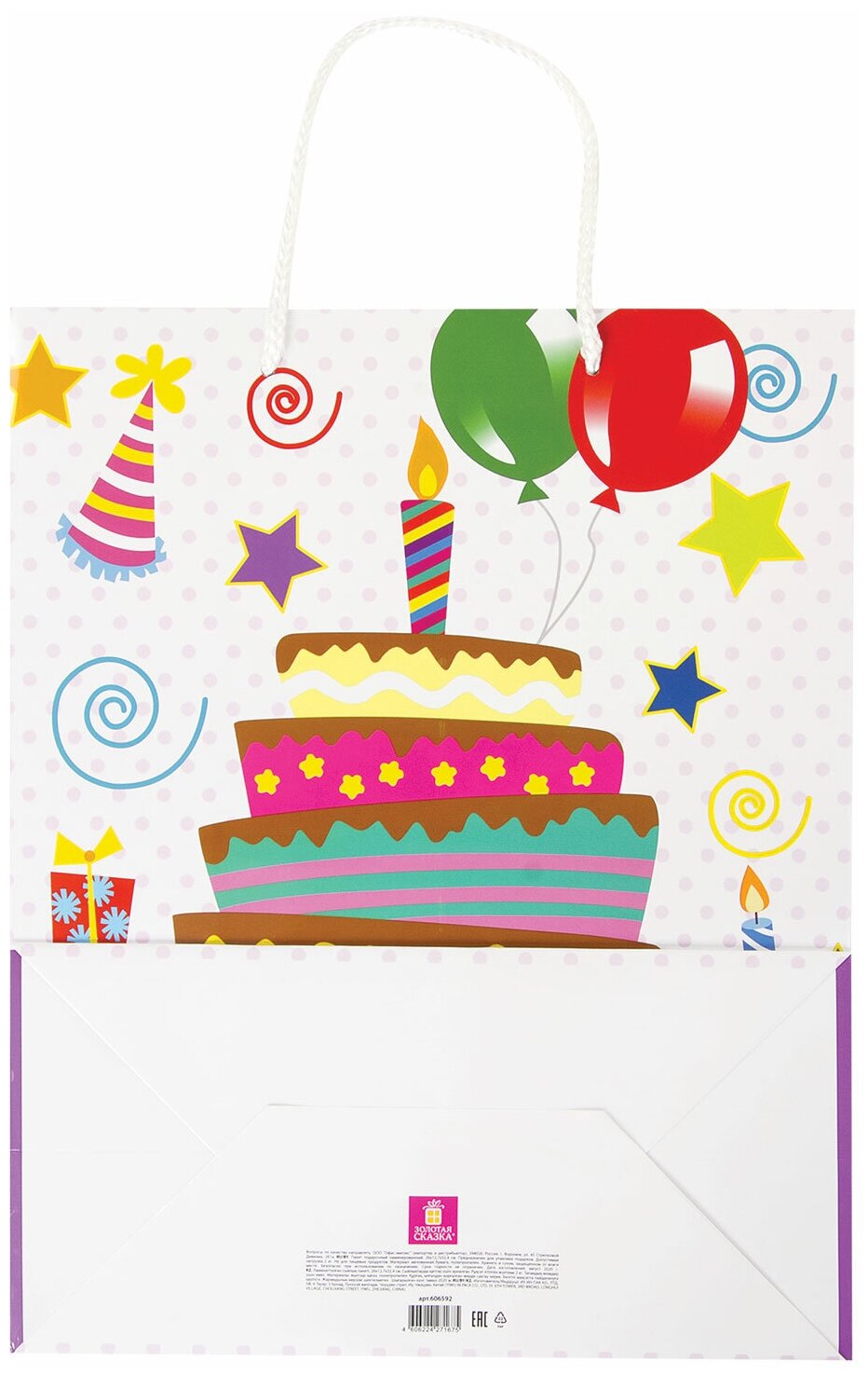 Пакет подарочный 26x12,7x32,4 см, золотая сказка "Именинный торт", ламинированный, 606592 информация: