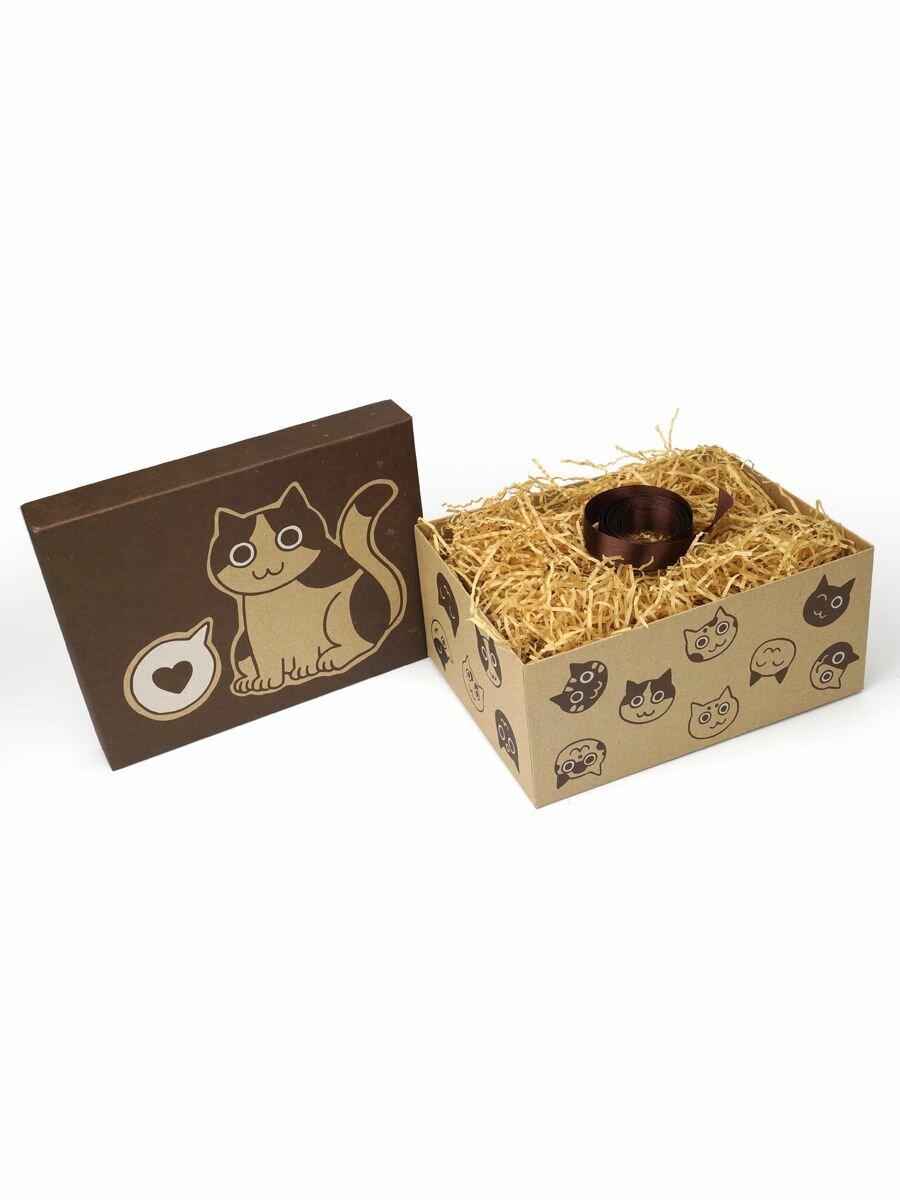 Отзывы на Подарочная крафт-коробка с бумажным наполнителем и атласной лентой "Котики", 22х17х10 см, 1шт
