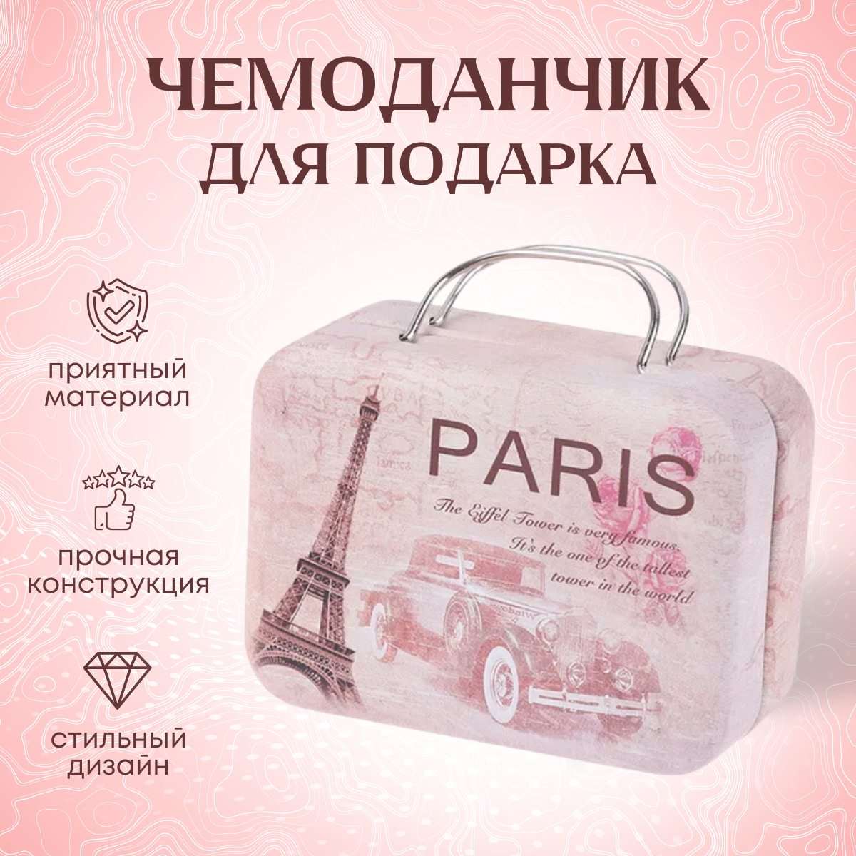 Подарочная коробочка для подарка в виде чемоданчика с символами Парижа информация: