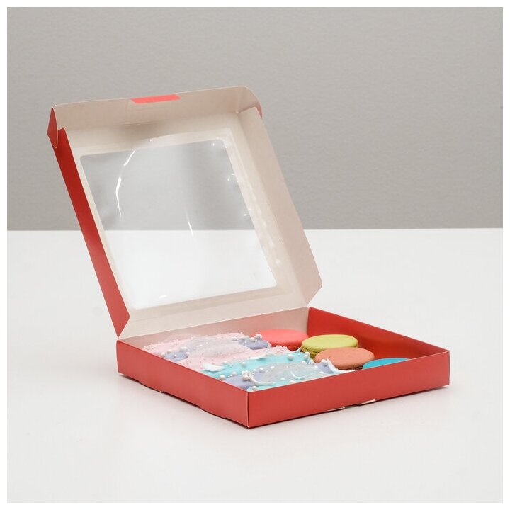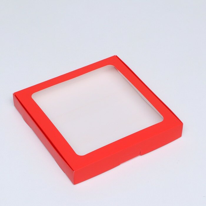 Коробка самосборная с окном красная, 21 х 21 х 3 см информация: