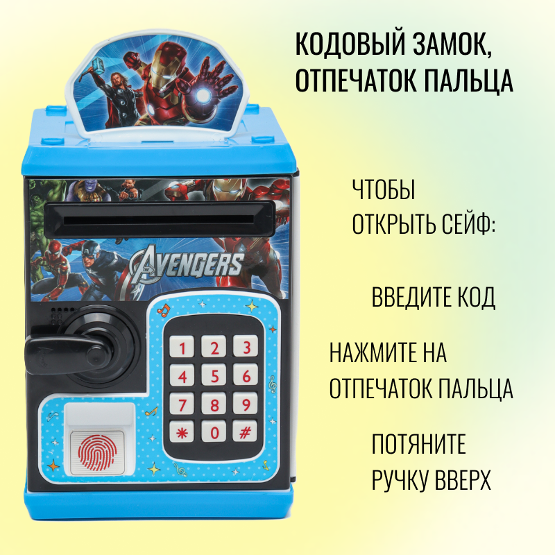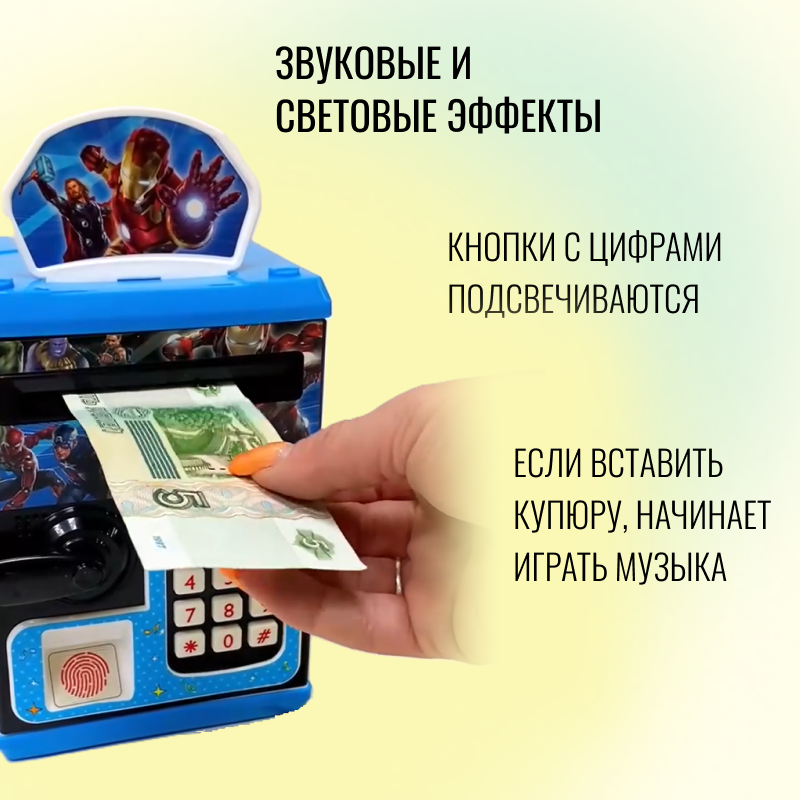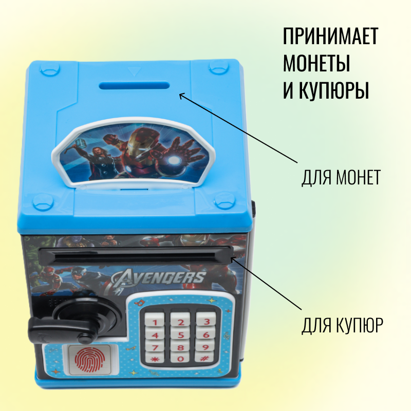 Отзывы на Детская интерактивная копилка-сейф для денег черно-синий / Копилки для мальчиков и девочек / Кодовый замок и имитация распознавания отпечатка пальца