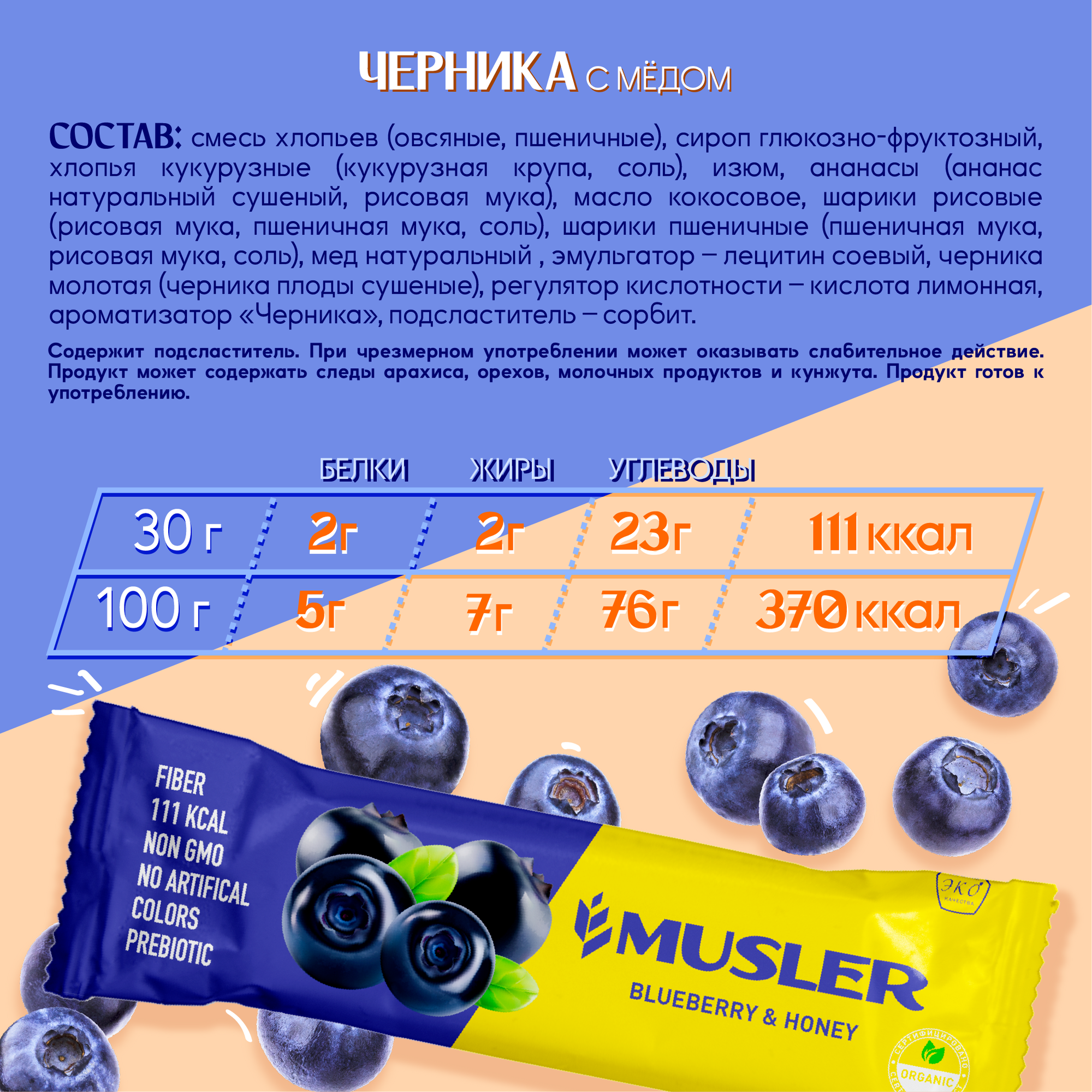 Злаковый батончики мюсли Musler Черника и мед 30г (6шт) информация: