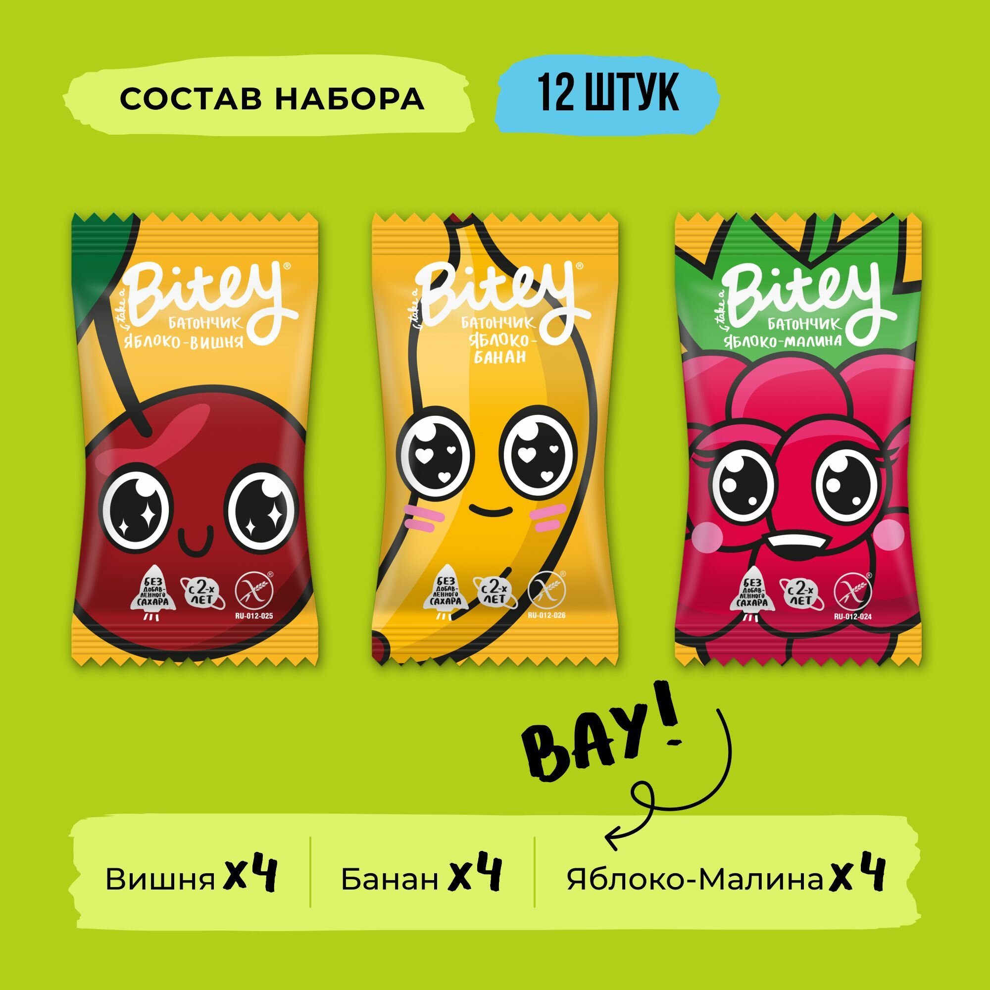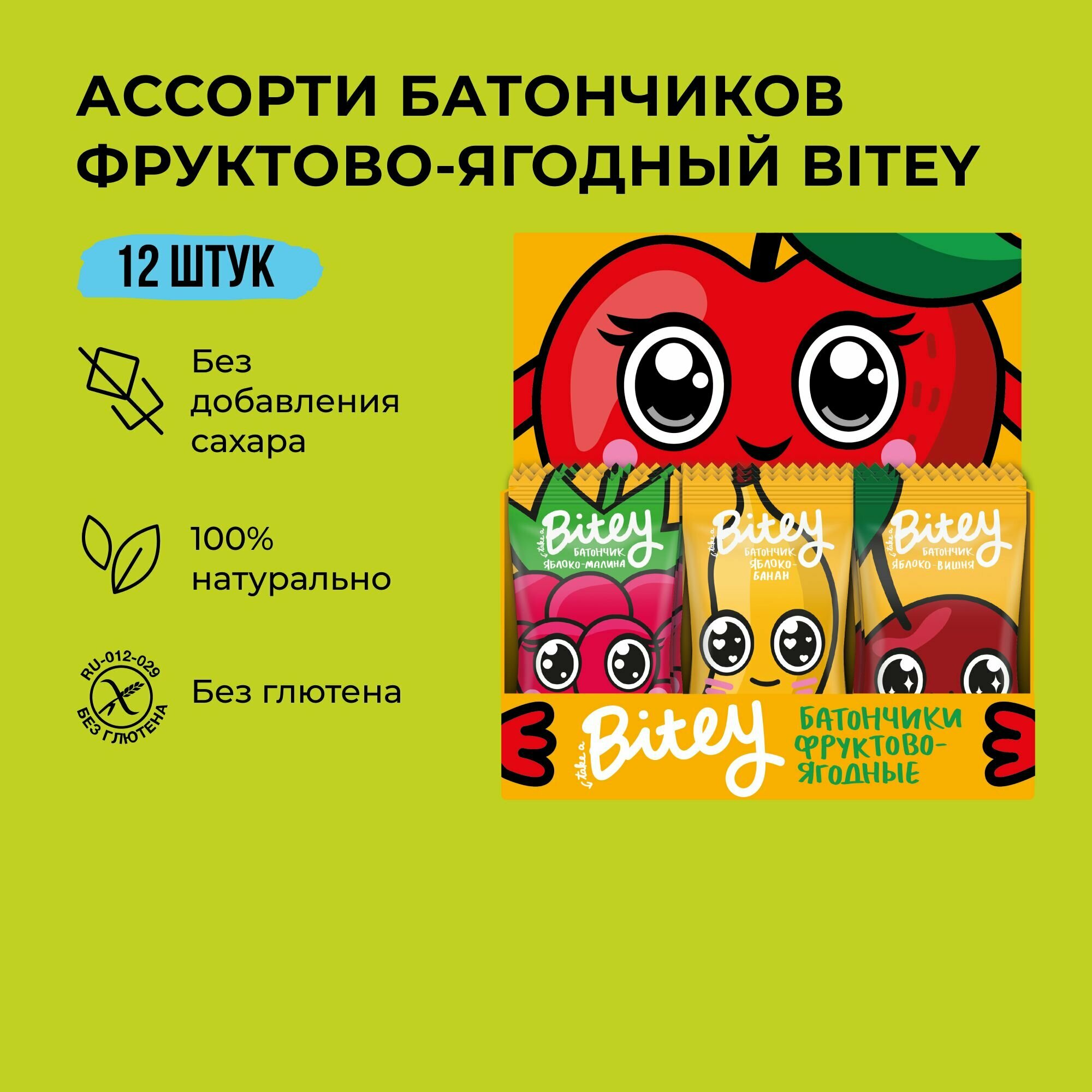 Батончик детский Bitey фруктово-ягодный Яблоко-Банан, без сахара 12 шт по 25г
