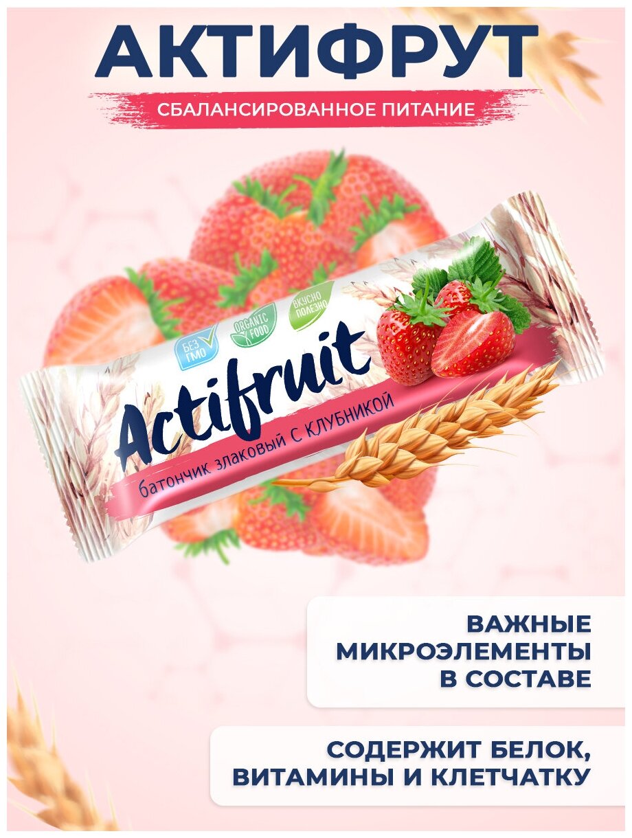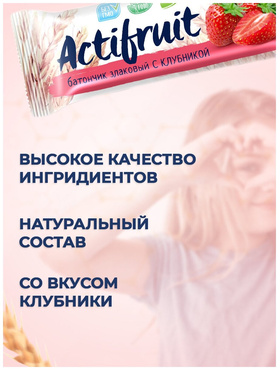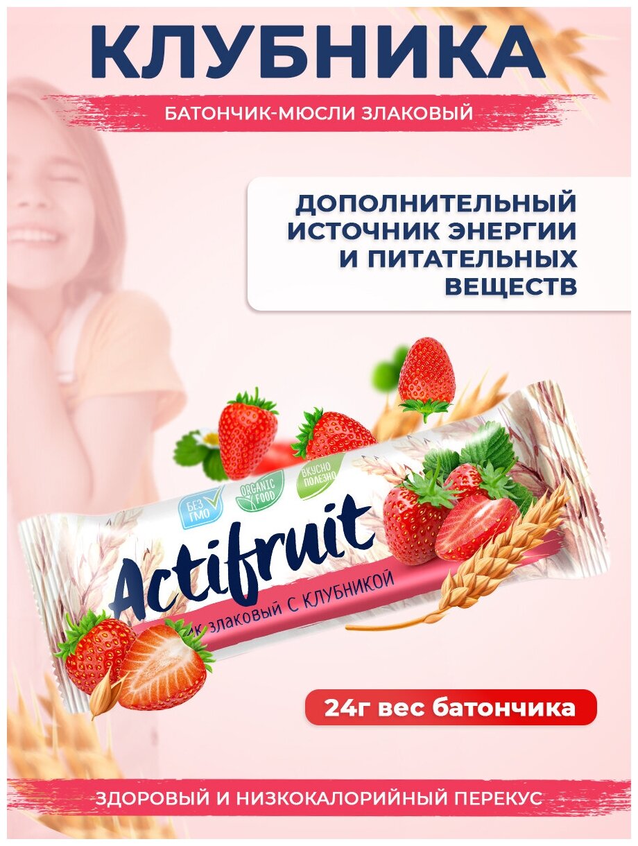 Актифрут Батончики злаковые мюсли Клубника, снэки на перекус, суперфуд с собой 36 шт Actifruit аптека асна информация: