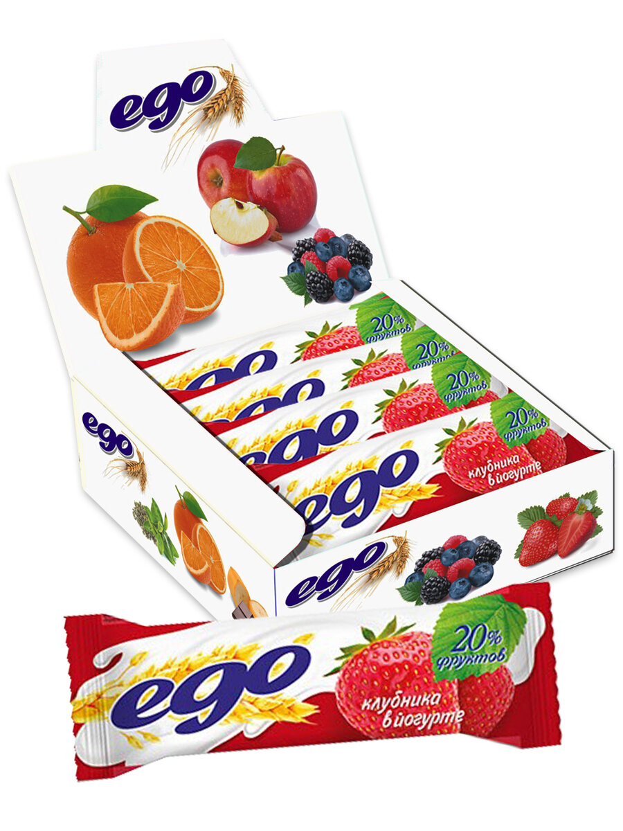 10 цен на Батончики мюсли Ego "Клубника йогурт" 12 шт по 25 гр / диетическое питание