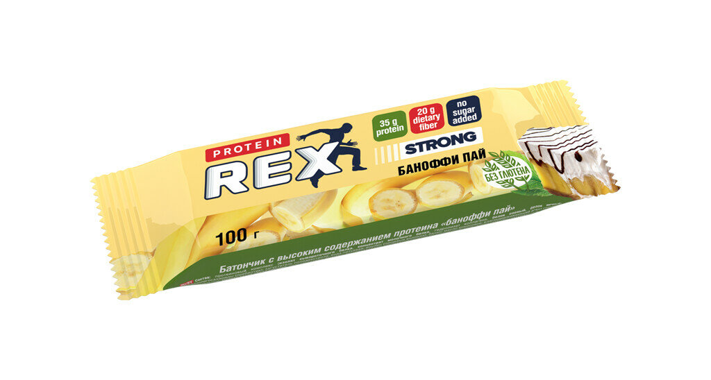 Батончик REX STRONG с высоким содержанием протеина, Баноффи пай 100 гр. информация: