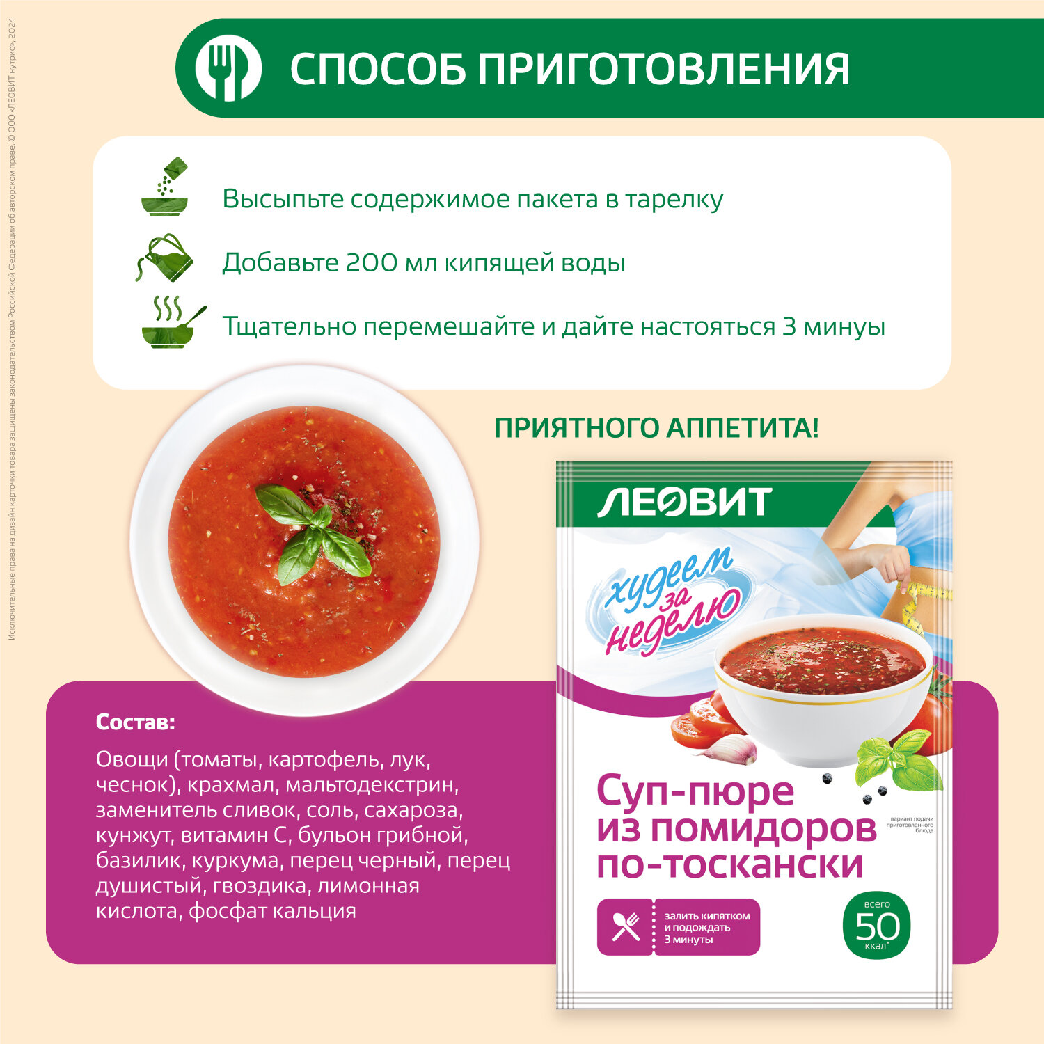 Суп-пюре из помидоров по-тоскански леовит Худеем за неделю. Шоубокс 20 шт. по 20 г. информация:
