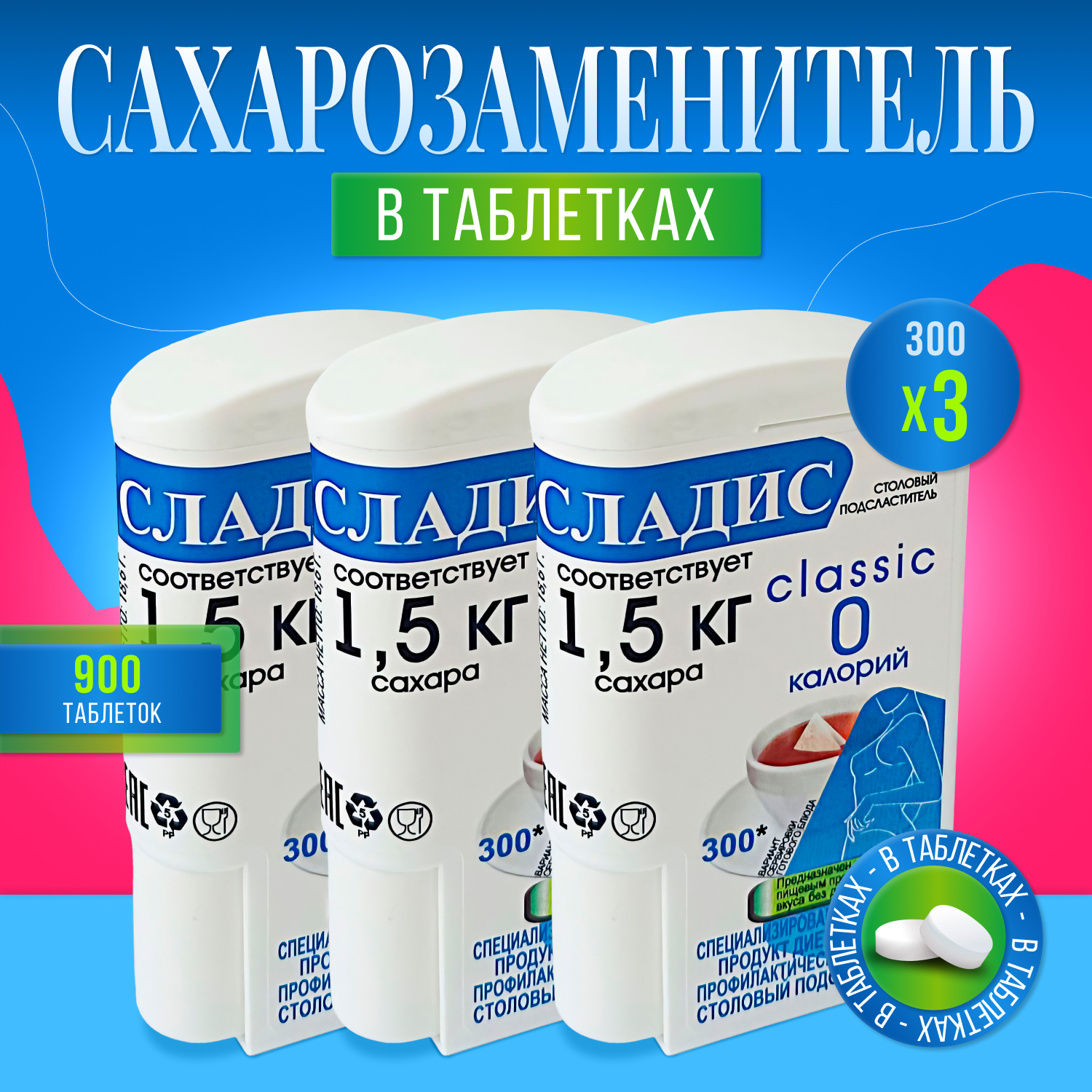 10 цен на Cахарозаменитель Сладис Классик 300 таб. дозатор х 3 шт.