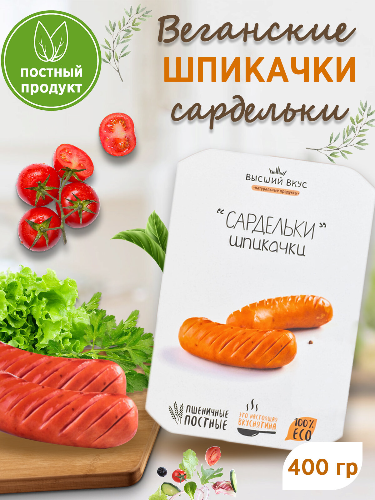 Сардельки пшеничные "Шпикачки постные" Высший Вкус 400 гр информация: