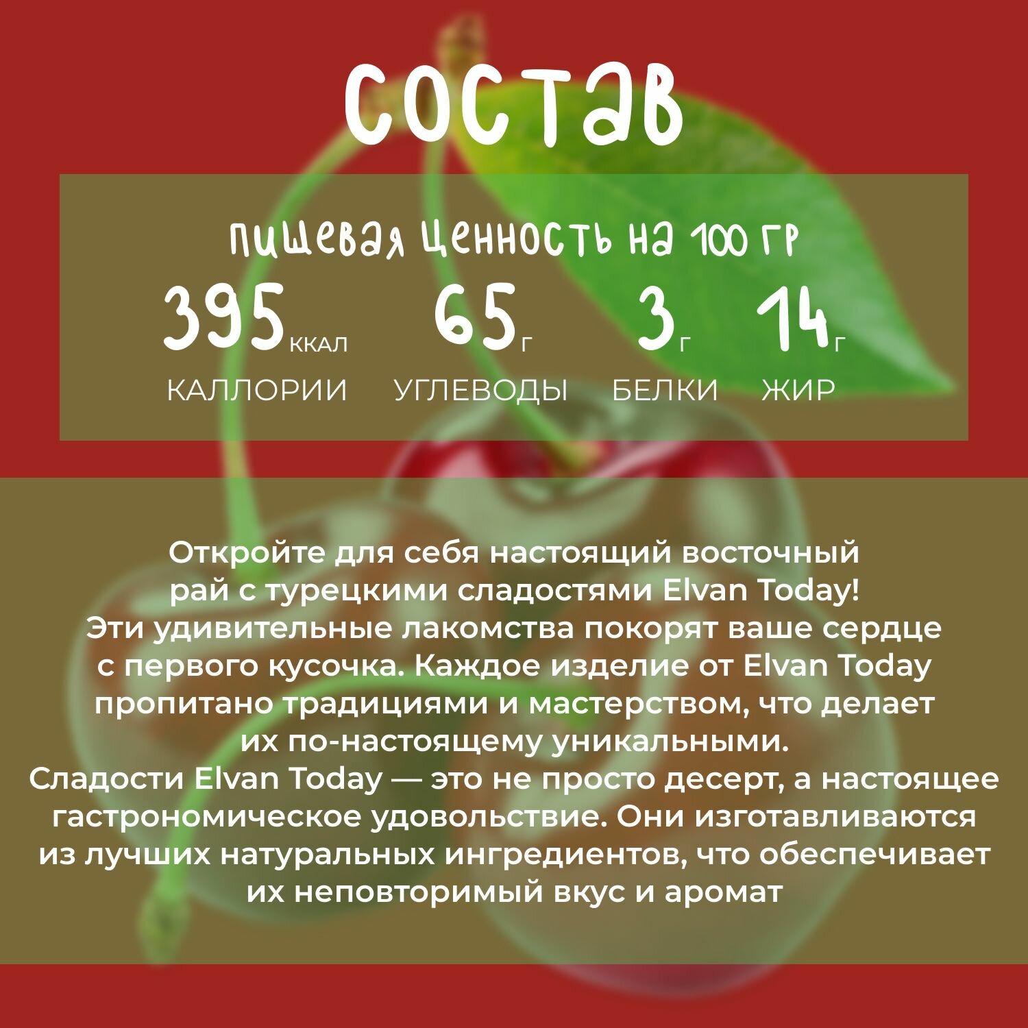 | Состав | Состав: кекс (74%): сахар, растительное масло, пшеничная мука, яйцо, крахмал, сироп глюкозы, эмульгатор (моно- и диглицериды жирных кислот, соевый лецитин), увлажнитель ( глицерин), сухое обезжиренное молоко, соль, разрыхлитель (бикарбонат натрия), ароматизатор (ванилин), консервант (сорбат калия). Глазированное покрытие с вишневым ароматом (11%): растительное масло, сахар, порошок деминерализованной молочной сыворотки (молоко), сухое обезжиренное молоко, эмульгатор (соевый лецитин), ароматизатор (молоко, вишня), краситель (свёкла красная). Продукт содержит глютен, молоко, может содержать остаточные следы яиц и орехов. Пищевая ценность на 100 г продукта: белков - 1.2 г, жиров - 6 г, углеводов - 88 г Энергетическая ценность 100 г: 411 ккал |