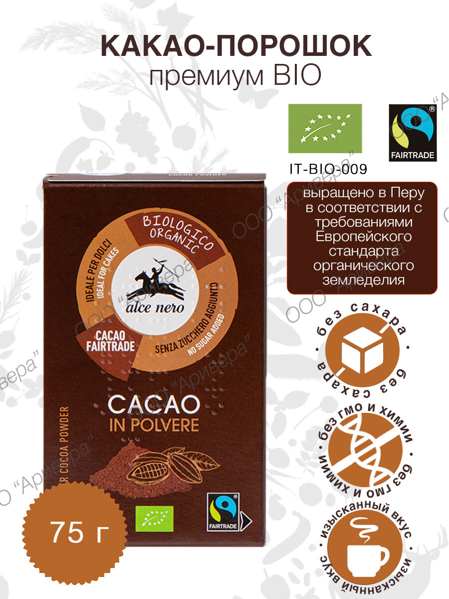10 цен на Alce Nero Какао-порошок премиум БИО, картонная коробка 75 г
