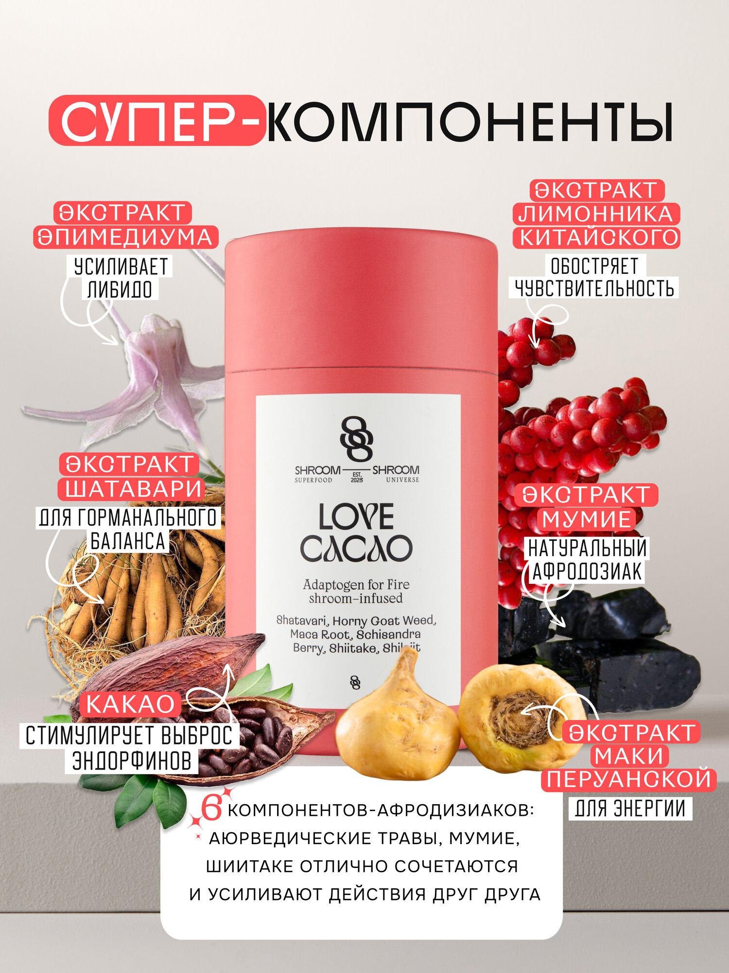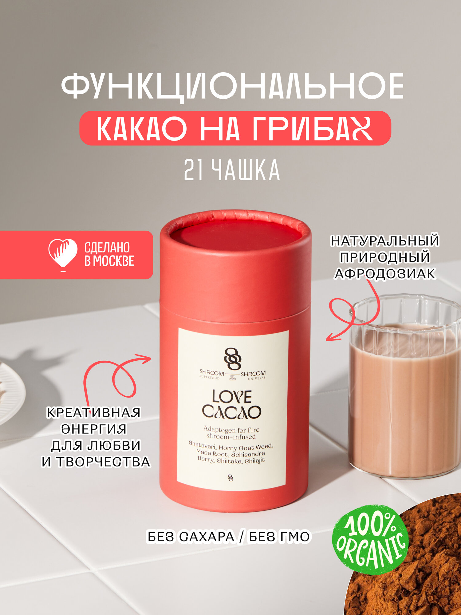 Какао порошок натуральный LOVE CACAO с аюрведическими травами информация: