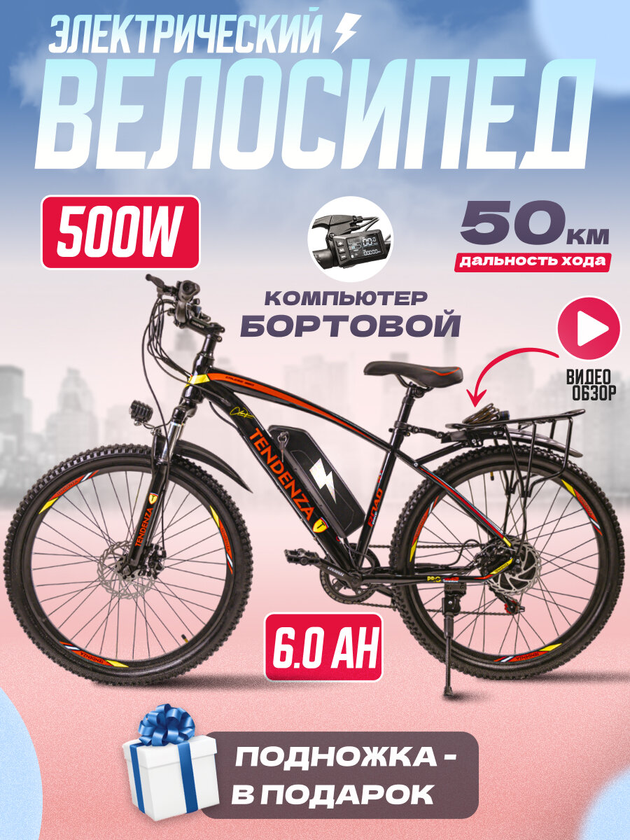 10 цен на Электровелосипед спортивный Tendenza, 3 режима скорости, диаметр колёс 26, рама 17 дюймов, горный, взрослый 500W, 35 км/ч