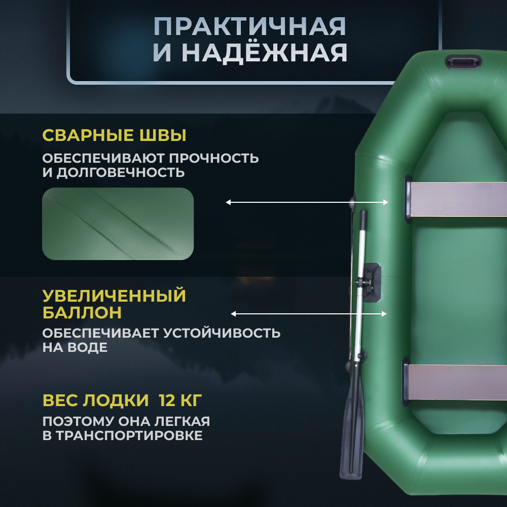 Отзывы на Лодка ПВХ под мотор надувная двухместная гребная для рыбалки Magnum PRO 260 зелёная