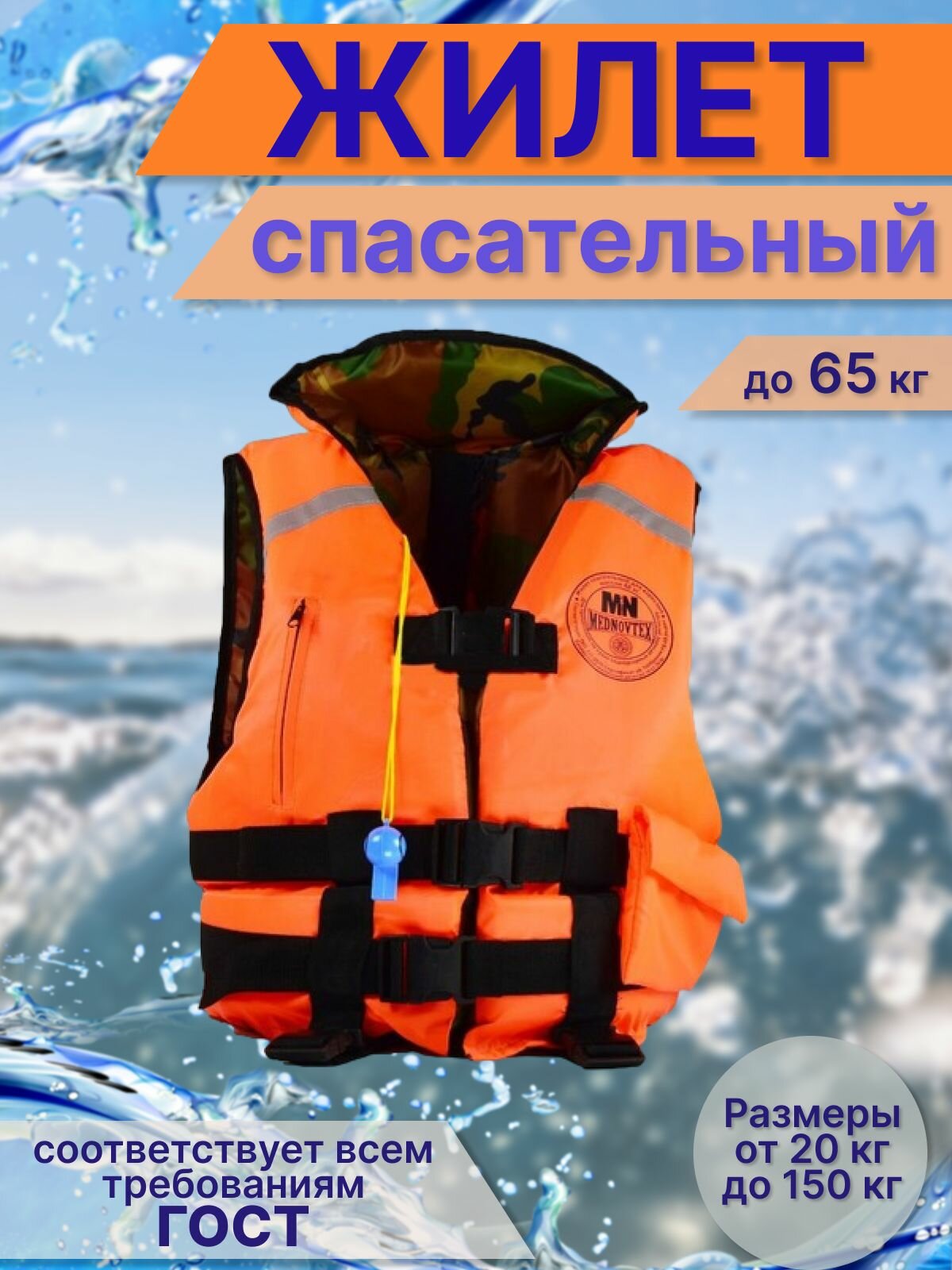10 цен на Жилет спасательный для детей и взрослых, до 65 кг,двухсторонний