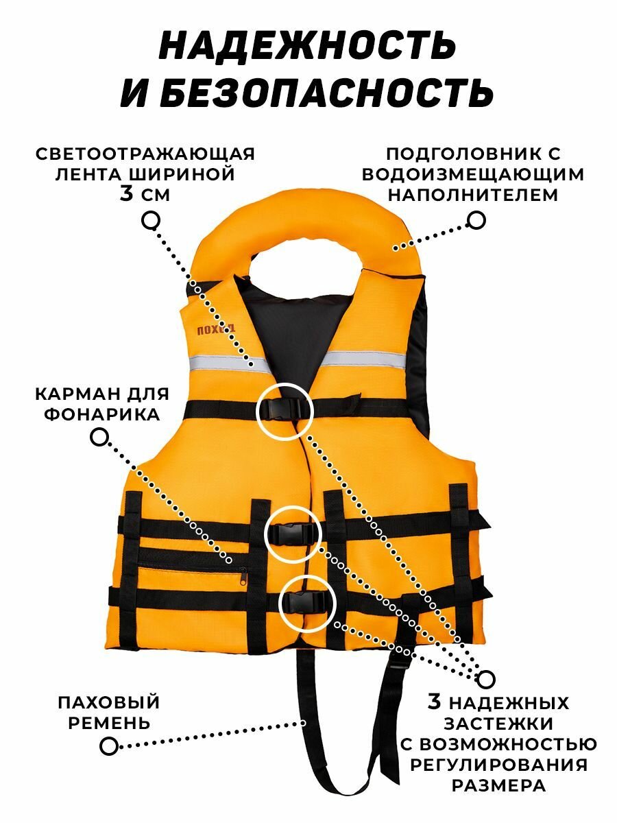 Спасательный жилет с подголовником взрослый, Жилет страховочный с подголовником INDIGO XL (54-58) Оранжевый