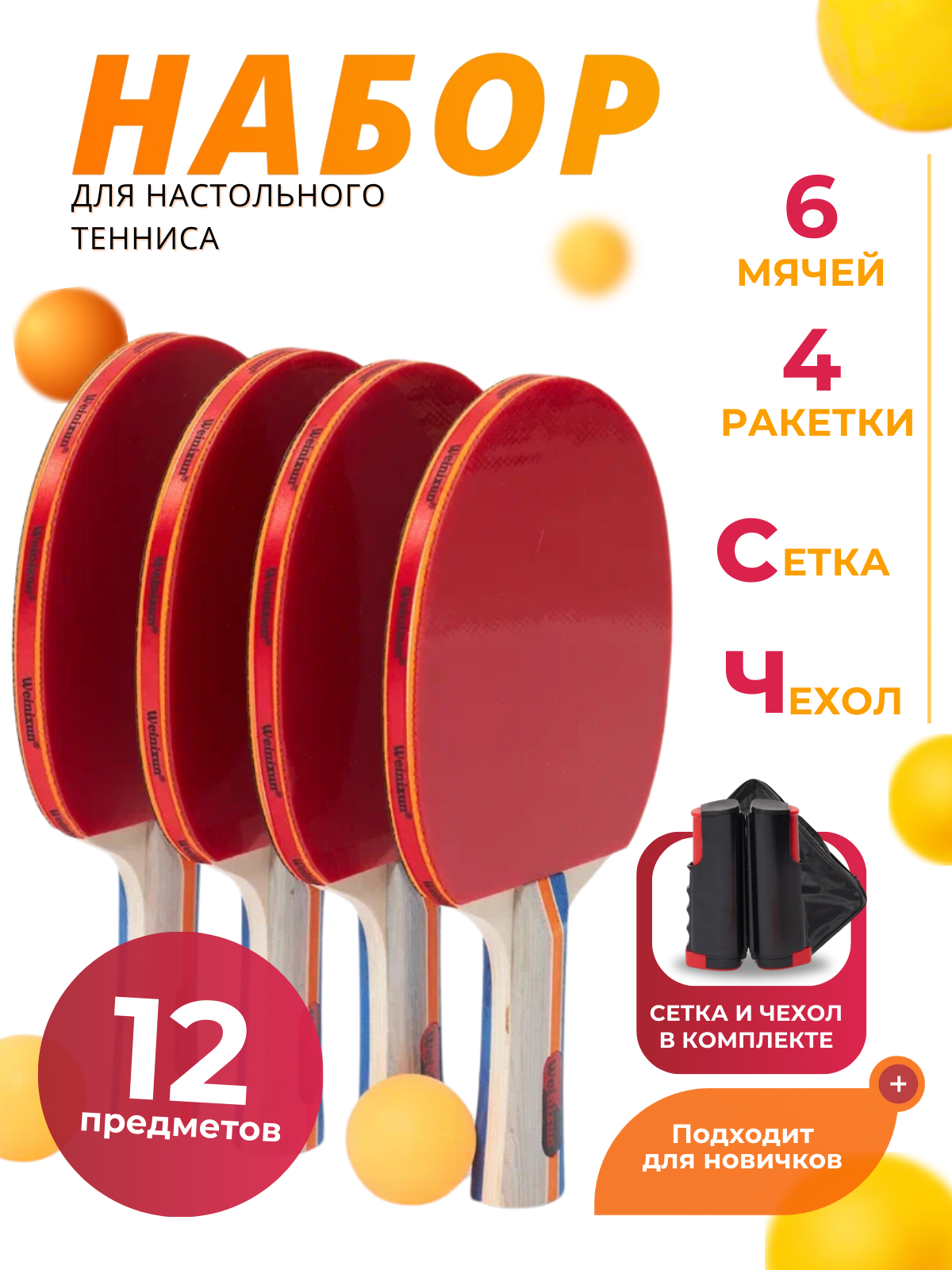 10 цен на Набор для настольного тенниса с автоматической сеткой, 4 ракетки, 8 мячей в специальной сумке-чехол.