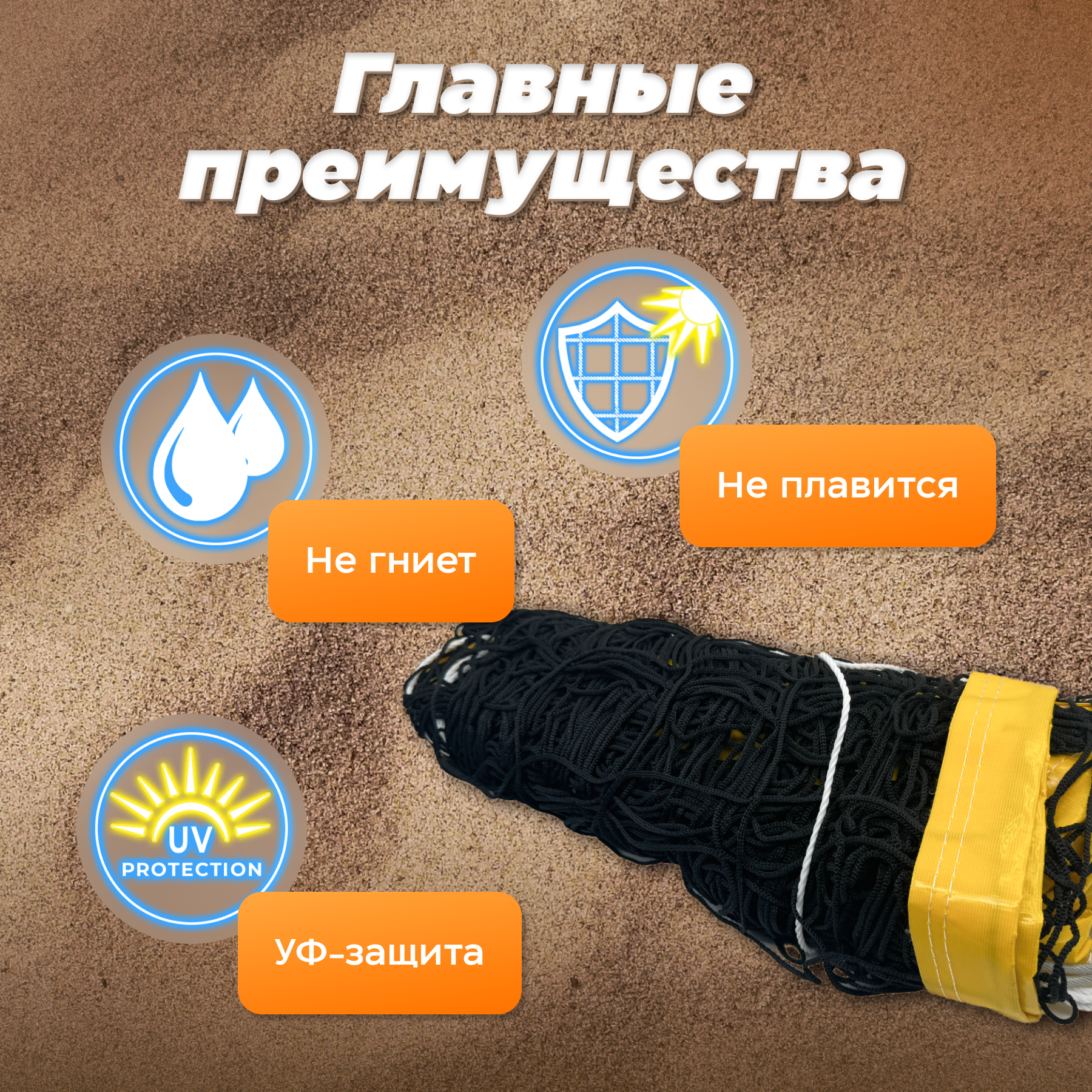 Сетка для пляжного волейбола cо стальным тросом нить 3,0 мм информация: