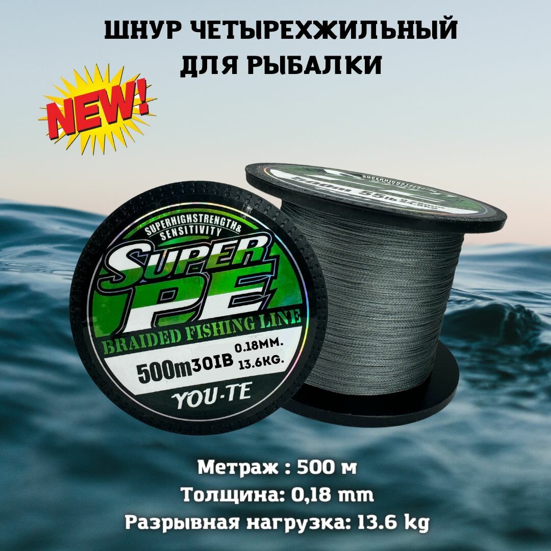 Плетеный шнур для рыбалки Super Pe 0.18 мм 500 м / леска плетенка информация: