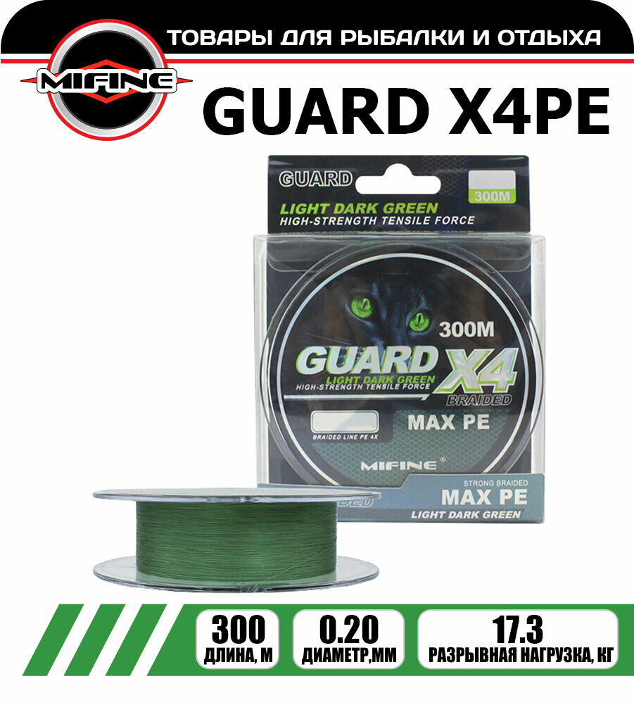 Плетеный шнур GUARD X4PE (0.30мм, 300м, 27.5кг) информация:
