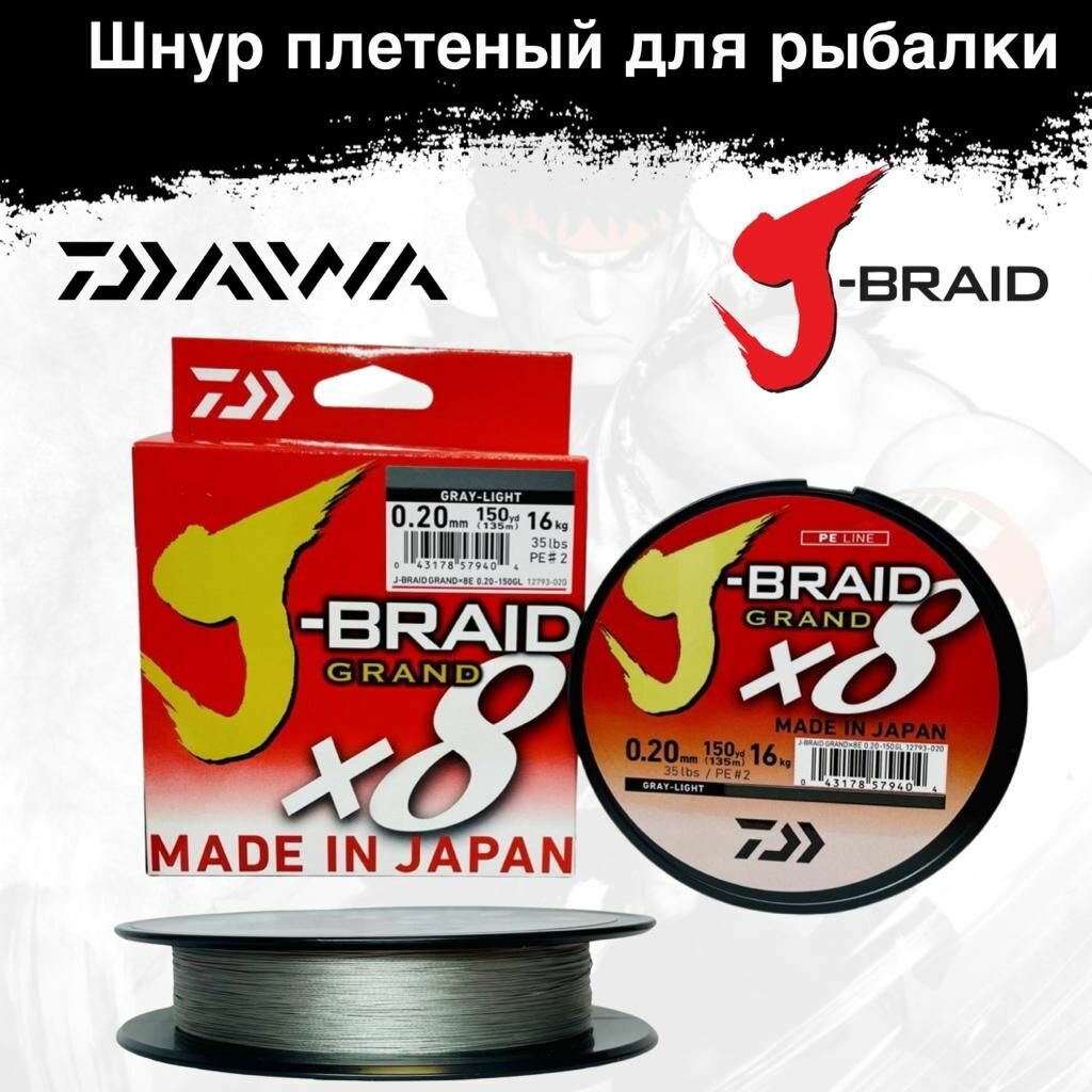 Плетеный шнур для рыбалки Daiwa J-Braid Grand х8 серый 135 метров 0.24 мм информация:
