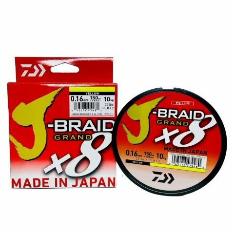 Плетеный шнур для рыбалки Daiwa J-Braid Grand х8 желтый 135 метров 0.22 мм информация: